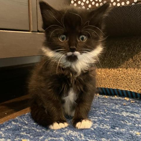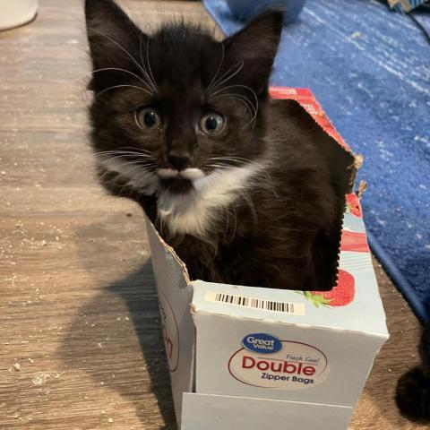 Due to his young age, McKay must be adopted as a pair with one of his littermates or go to a home that already has a kitten or a young, active cat. He cannot be adopted as a single. McKay is a fluffy black and white boy whose incredibly sweet attitude matches his angelic appearance. He was born in a foster home to mom Fergie (also available for adoption) and 4 other littermates on July 12. McKay loves humans and will climb all over his foster mom while she reads until he finds the perfect napping spot, where it be on her head, her shoulder or her lap. He loves to be petted and scratched and will frequently turn onto his back for belly rubs. Hes playful and adventurous with his litter mates and will tumble and pounce for hours, then nap in an adorable puddle of kittens. Hes had experience interacting with adult cats beyond his mother and has done well with them. McKay will make a wonderful pet and could be adopted with one of his littermates (see Rue, Lexi, Ash or Fezco Rockbridge). He has had his first set of vaccines. McKay will need to be neutered when he is old enough.