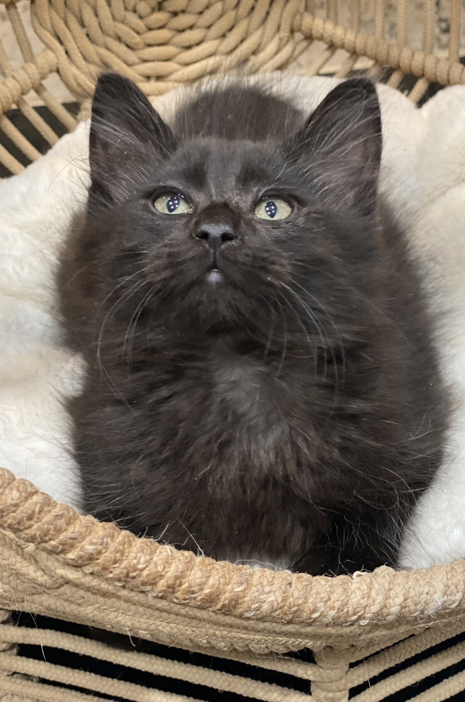 Buzz is microchipped, neutered, vaccinated and FELV/FIV negative. He is fluffy. Hes sweet but he is very shy and will not initiate any kind of affection and mostly avoid human interaction. He had a cold as a kitten and after having to get meds, he started to run from humans. Eventually he may come back around. He stays around the other cats mostly and interacts with them. He needs to go with his mom Thelma or brother Alvin. He gets along with cats and dogs. Buzz would be best in a home without young children and one that will be patient with him and not expect a cuddly buddy. updated pics to come,