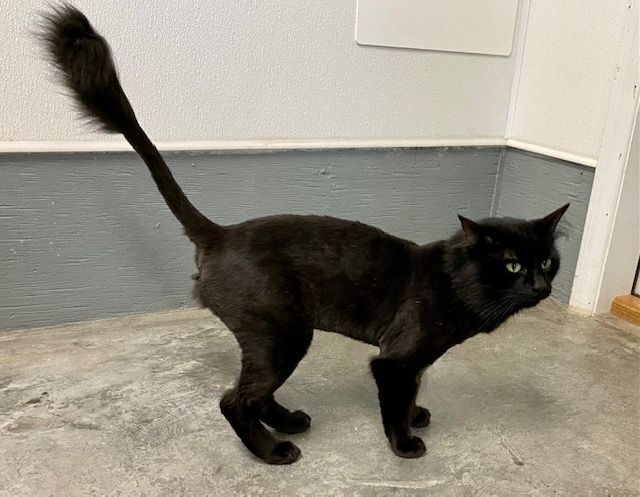 Galaxy the lion-hearted is a shelter favorite! He came to us with mats, thus, his haircut! He is longhaired and did not want his picture taken prior to his haircut. Galaxy is a young adult and is SO GENTLE! He is people friendly, laid back cat who is fine with other cats, and will walk away from them if our kittens bother him too much.