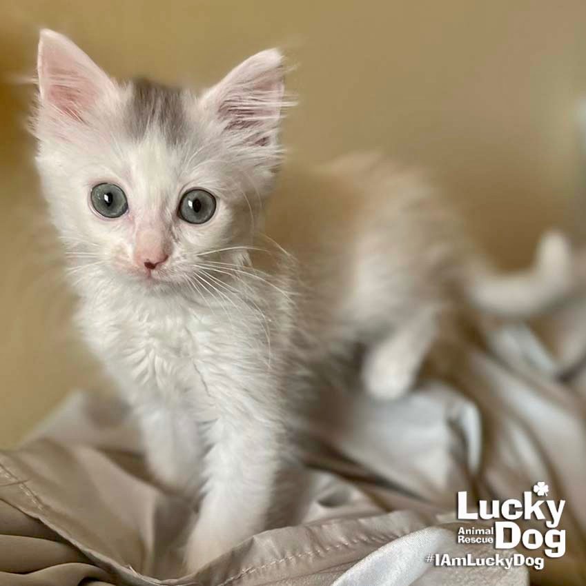 Sweet baby boy looking for his forever home!ALFREDO NEEDS A FOSTER OR FOREVER HOME!!!! Name: Alfredo Best Guess for Breed: Domestic Long Hair Best Guess for Age: ~8 weeks as of 9/25/22 (DOB 8/1/22) SEX: Male Approximate Weight: 1.3 lbs as of 9/18/22 Coloring: White with gray Type of Hair: Long Gets Along With: Because of his young age, Alfredo will likely get along with cats, kids and dogs given an appropriate adjustment period. We can help with tips and tricks. Litter: Akiko, Alfredo, Ari Currently Living at: Shelter - needs a foster! I am Looking For: My forever home! Hi- Im Alfredo, a fluffy baby boy who cant wait to meet his new family! I wont ask for much - just some love, cuddles, and lots of toys so I can run and play and be my kitten self. My sisters are looking for a home as well- and two kittens can be so much fun! What my foster says about me: Coming soon! Kitten Vetting Requirements: Your kitten may not be fully vaccinated upon adoption. You will be responsible for providing whatever remaining vaccines are needed to complete the kitten vaccine series. Due to this kittens young age, she/he has not yet been spayed or neutered. As part of the adoption contract, it will be your responsibility, as the adopter, to ensure that this is done no later than 2/1/23. There are NO EXCEPTIONS and NO EXTENSIONS to this date . A nonrefundable spay/neuter deposit will be collected if you would like Lucky Dog to pay for this animal to be altered at one of our low-cost partner vets. TO ADOPT: The adoption fee for this kitten is $175 ($300 for two cats or kittens adopted together), which includes the cost of routine vetting. If you are interested in adopting, please complete the Adoption Questionnaire online at bit.ly/adoptaluckycat. Lucky Dog Animal Rescue does our best to provide accurate information about the cats we have for adoption. That said, we cannot make any guarantees about age, breed or temperament. Thank you for contacting Lucky Dog Animal Rescue and helping to save a life! Please visit us online at www.luckydoganimalrescue.org. BE A FOSTER!!! Fosters make it possible for Lucky Dog Animal Rescue to save and care for homeless and abandoned dogs! To learn about fostering, please contact fostering@luckydoganimalrescue.org. BE A SPONSOR!!!! Sponsors help Lucky Dog support the many dogs we save. To learn more about sponsorship, please contact info@luckydoganimalrescue.org!