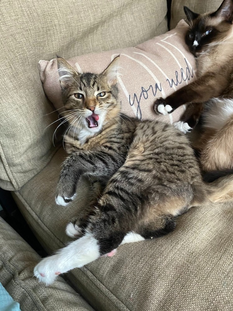 Mulligan is the sweetest boy ever, as much as he loves to play with his younger sister, Caddie, & all, his favorite toys are what he loves more than anything. This sweet boy loves to cuddle nap with you and lay on your lap while you work on the computer. He loves to spend quality time. This sweet sweet boy is purrrfection. He can be adopted with Caddie or alone.