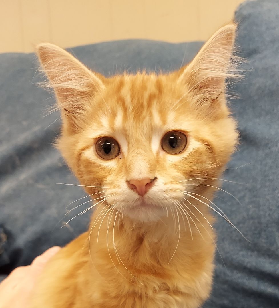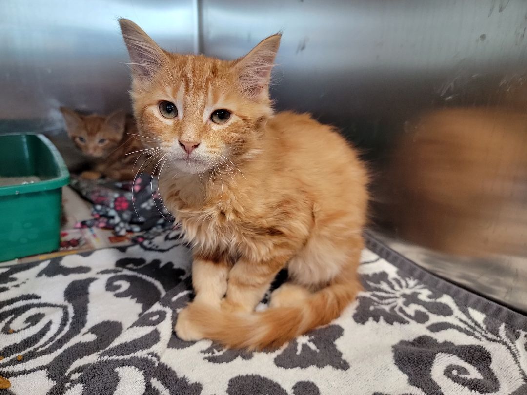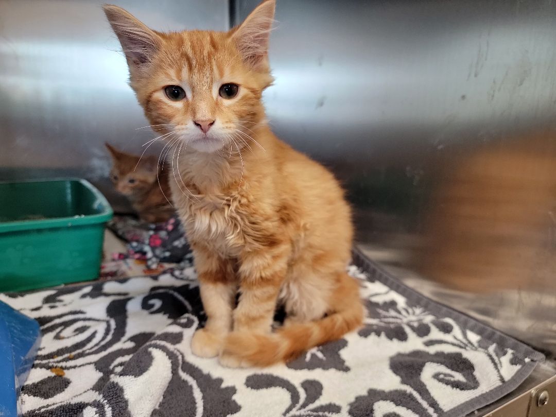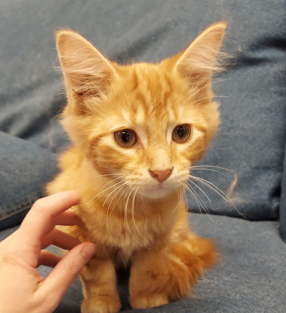 Chip is a beautiful orange tabby with medium length hair. He is currently around 3 months old. He is litter box trained. He is a little shy at first but it does not take him long to come around. He does well with other cats and we would love to see him go to a home with another cat or his sibling, Dale. His adoption fee is $50. We can add a microchip for an additional $20.