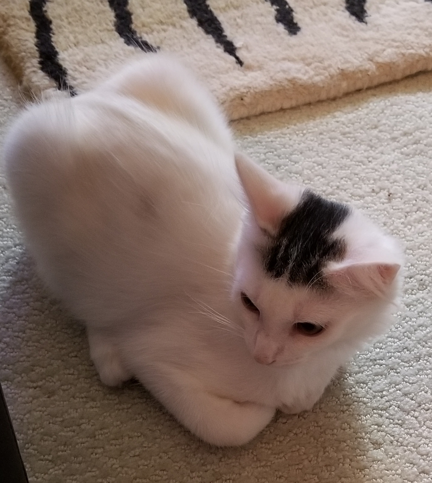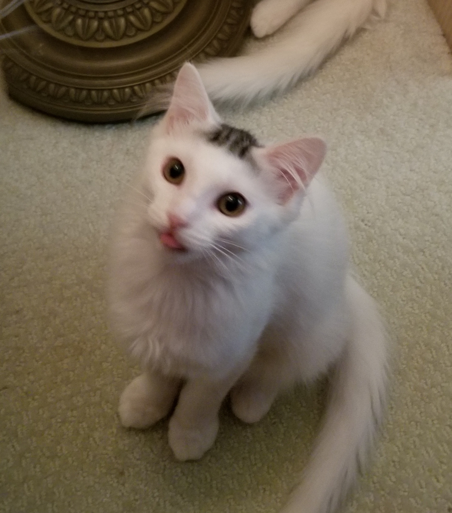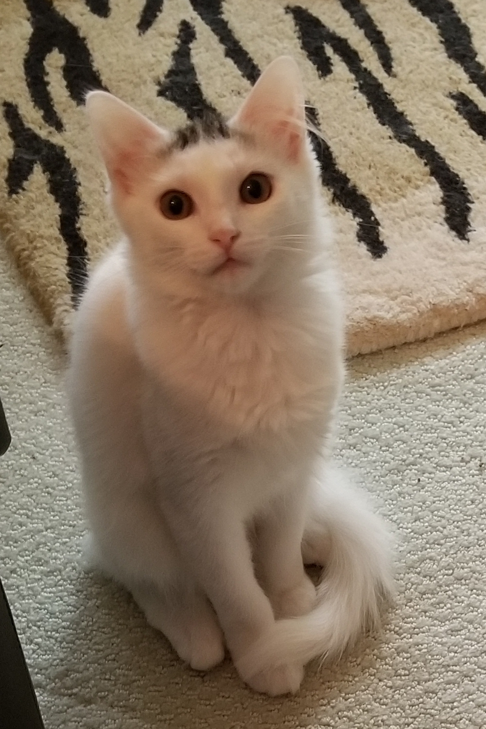 Kenny can be cautious at first introductions but once he is comfortable he is very affectionate. It will take an experienced cat owner to have patience with him.He gets along with the other foster kittens and adult resident cats so he needs another cat to boost his confidence. Loves to play with lots of toys and loving pets. His approximate DOB is in May of 2021. He is all white with a smear of black tabby just on the top of his head. He is neutered, vaccinated, chipped, dewormed, negative for FIV/FeLV. A questionnaire needs to be filled out on our website: www.homeatlastpetrescue.org in order to meet with him. We can also be called at 847-508-3232 if you have additional questions.