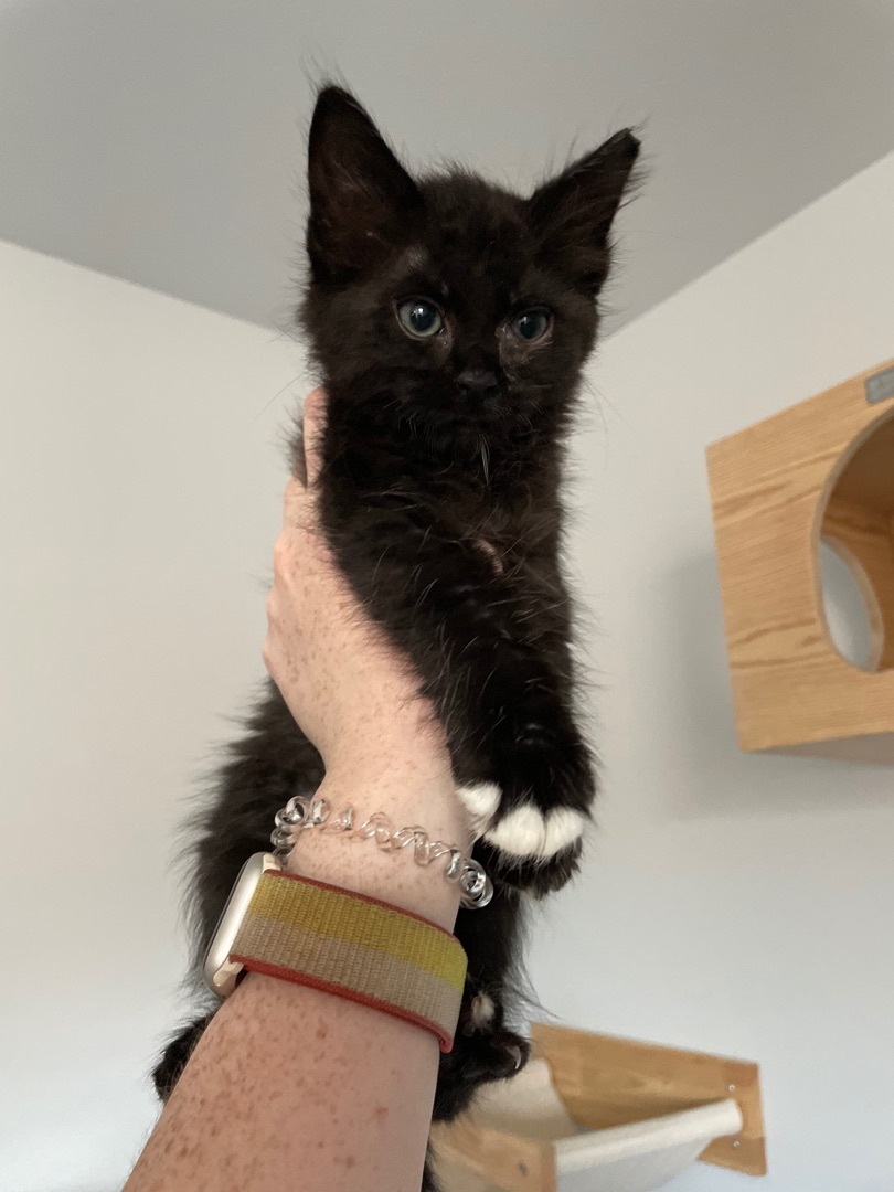 Hello! My name is Nick and I’m a sweet little boy. I can be vocal sometimes, especially when I’m ready for my food. I love playing with my brothers so I would LOVE to be adopted with one of them. I will settle for a home that already has a playful kitty tho. I am neutered, microchipped, rabies vaccinated, and I’ve received my first few rounds of my kitten vaccines!