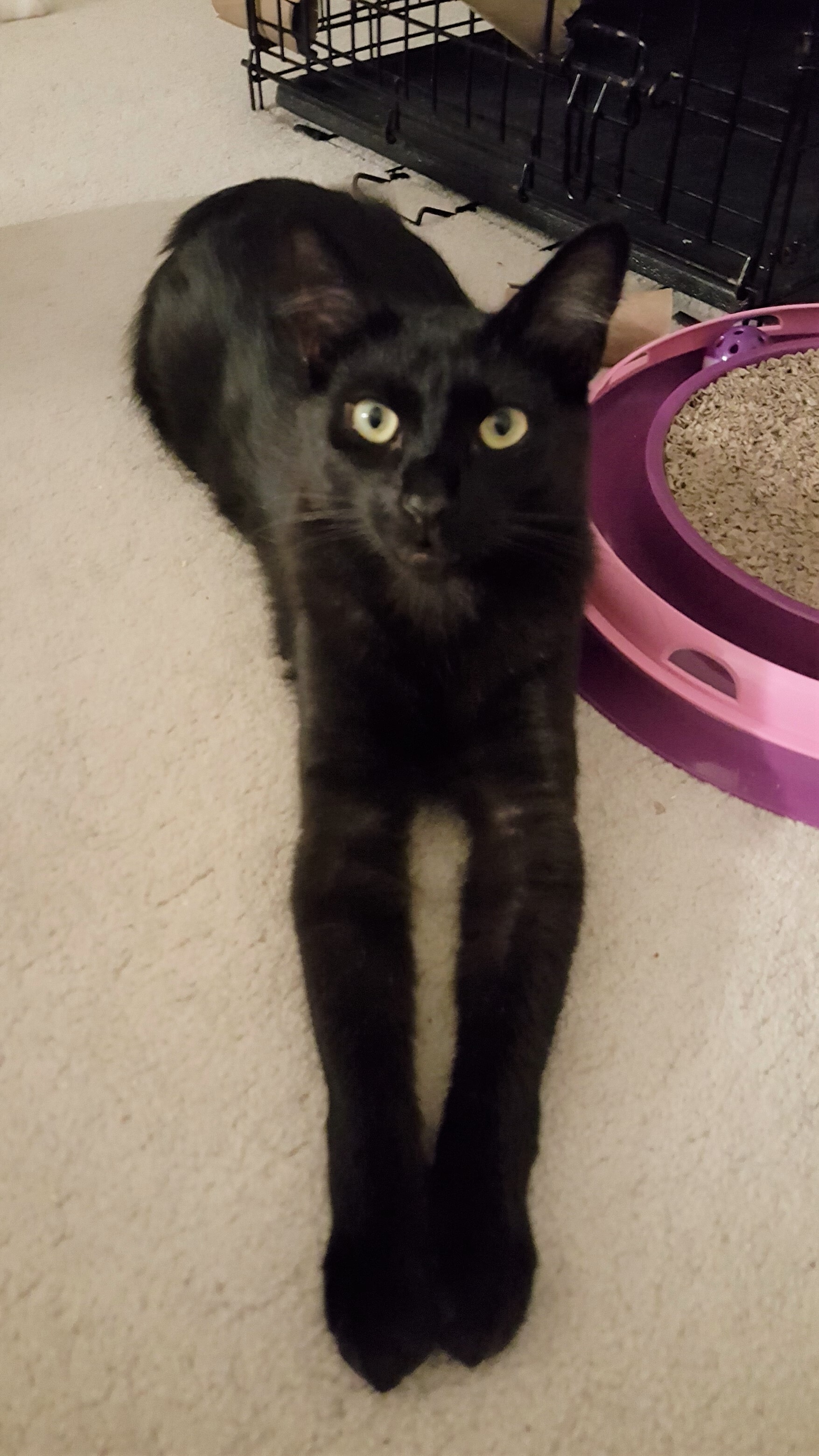 Bentley is a very handsome and stylish young man! Look at his beautiful long, long legs! His gorgeous and sleek black fur makes him very distinguished! His golden eyes highlight his beautiful face. Bentley is playful, friendly and loves life. He is very active and loves playing with other kitties, especially his foster buddy Daniel. They are the perfect yin and yang! https://www.petfinder.com/cat/daniel-54803267/ca/mission-hills/whiskers-inc-ca2754/ If you are looking for a sweet companion with hunky handsome looks, youve found your man. Be prepared to fall deeply in love!