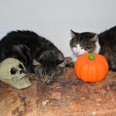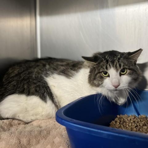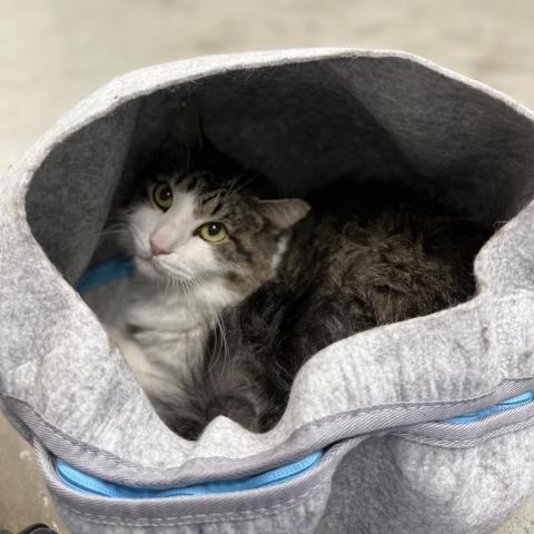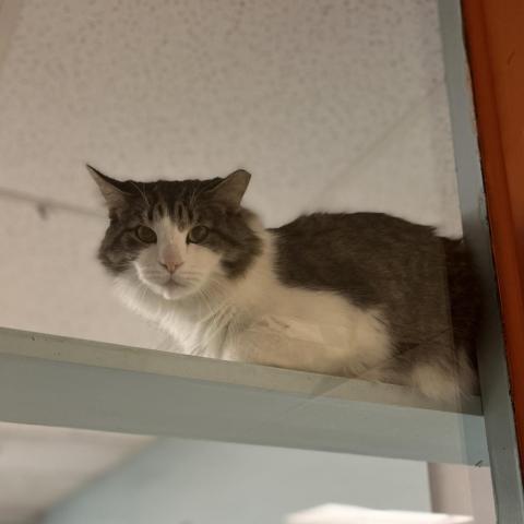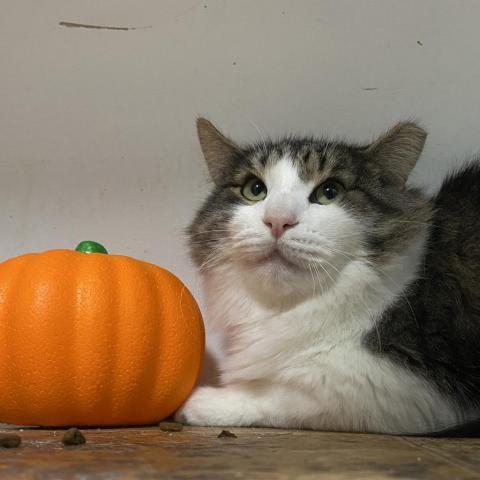Mush is extremely shy at first but he is also VERY sweet and gentle. He and his companion will need a very laid back and easy going home. Quick movements and loud voices/sounds frighten him and he will most likely bolt in fear. He will need some time to warm up and trust someone but it will be well worth the effort! He came from a home with 40 cats so he has never had the benefit of quality, one on one attention and socializing. Hes counting on YOU to provide that. He gets more and more relaxed each day but there is still work to be done. He will gently rub against your leg if he trusts you and you are calm and gentle with him. He might even let you cup his chin and speak gently to him. It is so clear that he wants to get close but YOU have to be patient and accommodating with his needs. He will make a wonderful and loving companion if he is given the chance to shine. He came in with several companions and he would like to go home with his friend, Solaris. They will benefit from having familiar companionship. Just think of how rewarding it will be to see these boys open up and learn to trust you. They have so much love to give.