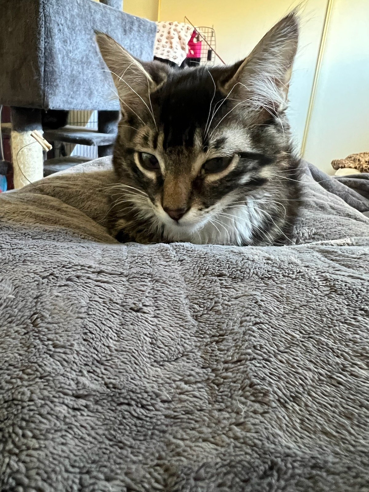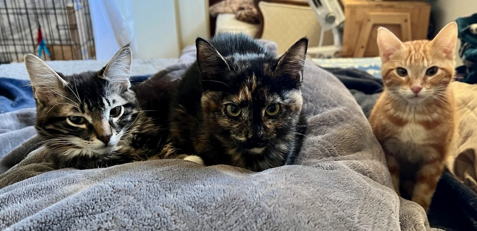 Boy George or just George is the most adventurous of his siblings ( Madonna and Bowie) ...he is the first to do anything and the first to climb the kitten tree and/or explore the bay window, pay with all the new toys or sleep with his human. He loves to play with toys so much that he will carry his mousies or balls around the room to show off as he is so proud of his conquest. Once trust is established, he loved to be petted and sleep and cuddle in bed with you. He and his siblings are food motivated so treats and meals will make you their hero. Bowie will love to watch TV with you...once of his photos looks like all he needs is a drink and he looks like one of the guys watching the game. If interested or have more questions, please email Julietinac@hotmail.com Community Concern for Cats is an all-volunteer rescue organization helping homeless and abandoned cats in Contra Costa County. Learn more about our adoption process, locations, fees, and download an application at http://www.communityconcernforcats.org/adoptions/adoption-process/.