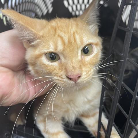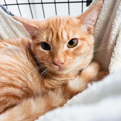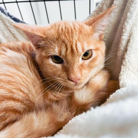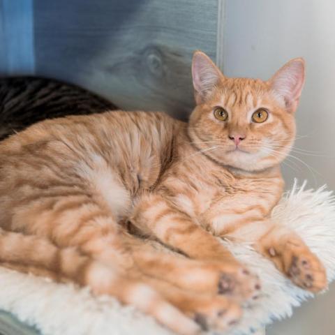 My name is Tim! Im a handsome orange tabby who loves other cats and kittens. I have the most tender "grandpa" meow and Im looking for a low key home that will allow me to take my time to learn my surroundings and grow into a spectacular cat! I am dewormed, vaccinated, microchipped, and neutered. My adoption fee is $75.
