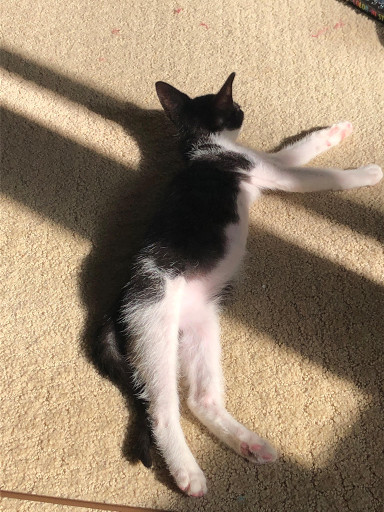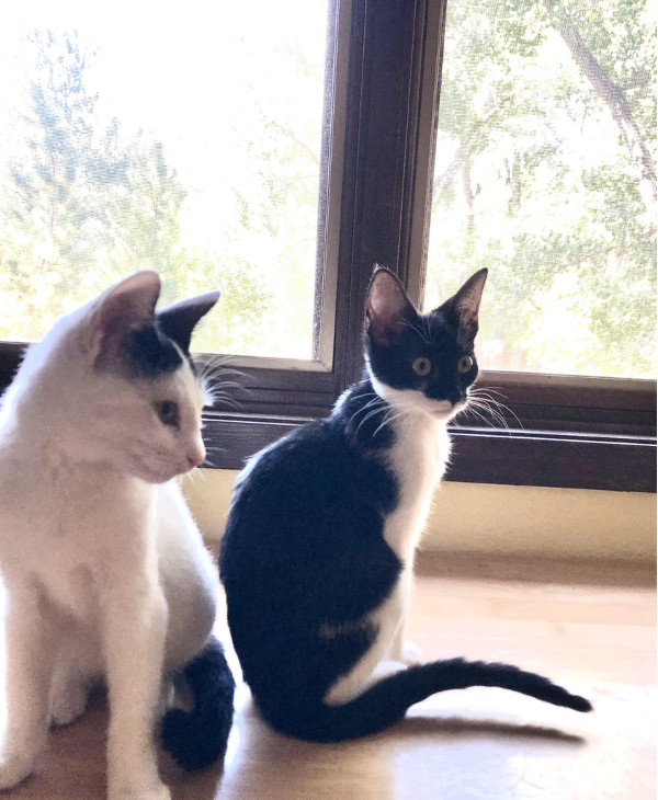 Hi there! Im a silly, independent, and affectionate kitten with a heart of gold. I love snuggling, sleeping by my humans head, and belly rubs, for which I have the best belly. I also like to believe that I have a lovely voice, and I express it often, especially when youre preparing my food. Like a frog, I love to jump up onto tables and counters, but even more, I love curling up with my tummy and feet up in my humans arms. My best friend is my brother Sherlock, and when we curl up next to each other, we look like a ying-yang symbol. I would love to be adopted with my brother, even though he eats most of our food! Also, Im looking for someone who is seriously committed and will keep my litter box clean! Graffito is neutered, microchipped and up to date on age appropriate vaccines. To arrange a meet and greet, apply at https://www.frontrangefreedomrescue.org/adoptacat