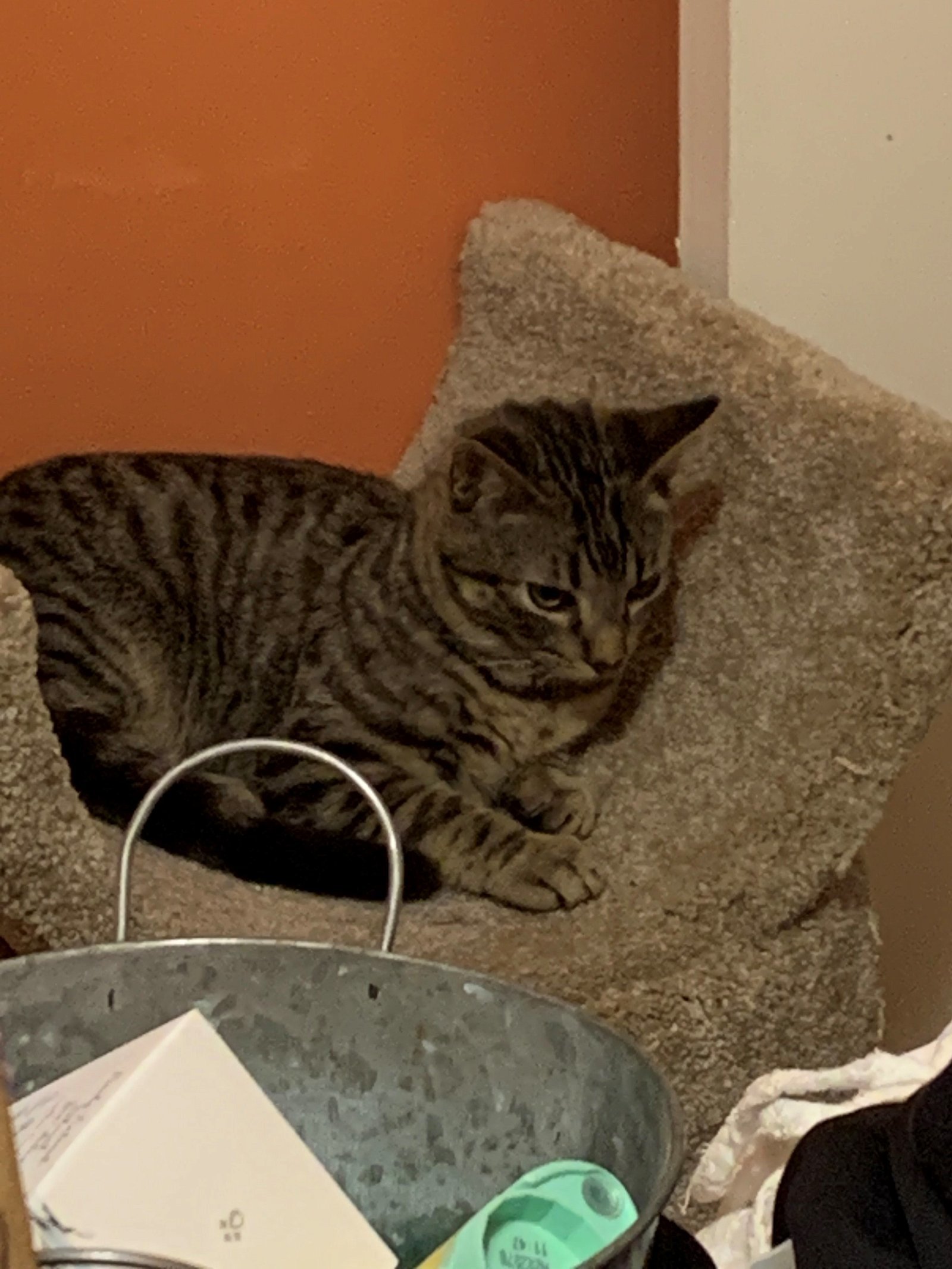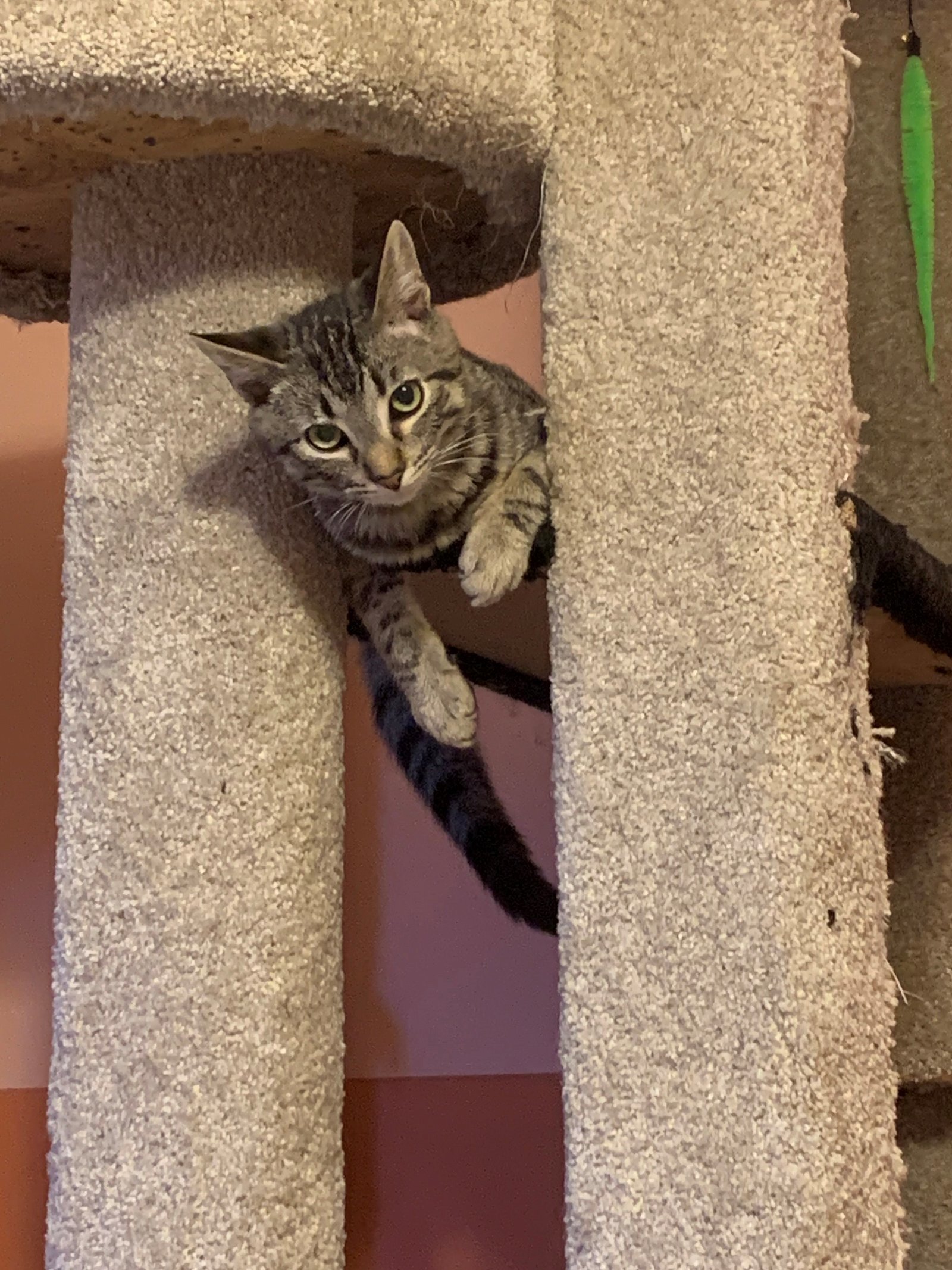 Nova is the sweetest boy who loves to play with everything he can and to be hugged and kissed. He is on the shyer side at first with new people and places but once he trusts you hell come running for pets or food. He is very food motivated, so treats are definitely the key to his heart. He slowly but surely has become more confident and playful and has really blossomed in his foster home and gets along with the other cats and dogs that live there. Nova encourages all the older cats to play and bounce around with him because he is so active. He is a handsome, playful home looking for a forever home to call his very own.