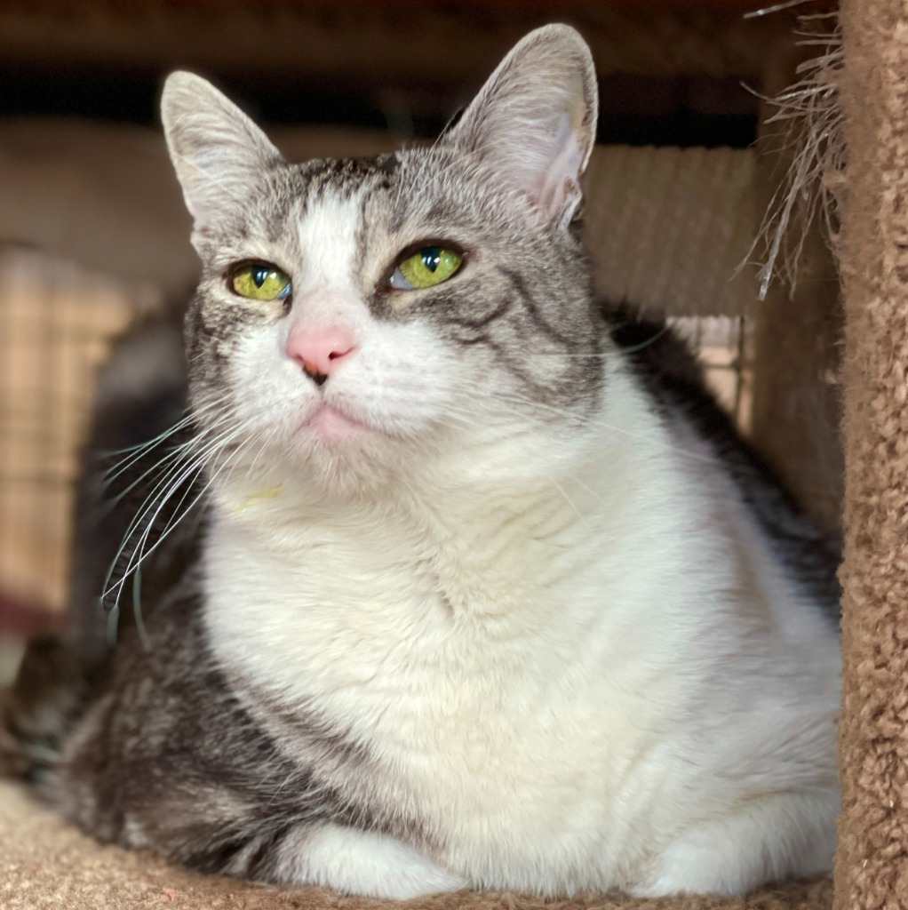Hellooo everyone! Im Cosmo! I came to HART over a year ago, and I am VERY ready to meet my special person. I have been shuffled around a bit in my 9 years of life, and Im looking to settle down in a nice, warm, fur-ever home. Let me tell you a bit about myself. Ive been told that my most striking feature is my beautiful light green eyes. People also say that my fur is soft like a bunnys, and who doesnt like bunnies? I would love to snuggle up next to my special people and keep them company. Ive been experiencing some health issues lately. Last March, I had a scary trip to the ER, and was diagnosed with Hypotrophic Cardiomyophothy. Ive been told that means I have a heart problem. Im currently on medication to manage it, and Im feeling a lot better. My foster mom is taking good care of me, but Im ready to find my fur-ever home. I promise, if you are willing to take a chance on me, I will love you with all my heart. Love, Cosmo