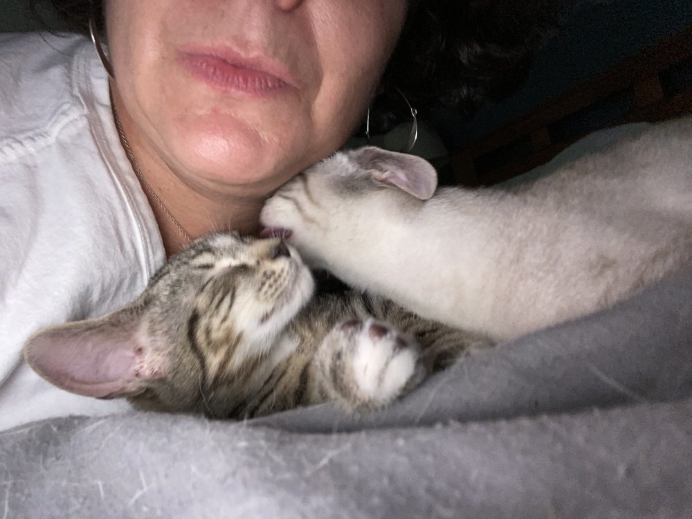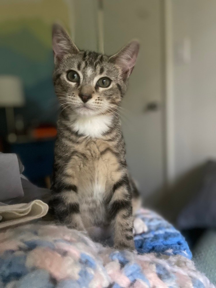 Im a sweet, active, curious brown tabby with a whole lot of love and silliness to give. Ive come a long way in foster care, from being scared of hands and running off to hide to happily climbing into my foster dads lap and draping my arms across my foster moms hands to ask for more pets and treats. In fact, Ive become a love bug. I enjoy greeting people when they come home or enter a room. Ive been around big dogs, and after a few days of me telling them whos boss, Ill even curl up with them. Im curious about other cats and am eager to make friends with them. I love to play with toys. A wand toy is the best way to help me settle in, along with lots of treats (I can be bribed) and petting me while I eat. It took me a week to settle in at my foster parents home. I might get scared of your hand at first if you approach my head, so its best to start scratching my back and butt. Go slow with me; give me treats, and Ill learn to trust you. Well be besties for life. My litter box skills are on point, and I eat well, both dry food and canned food. Did I mention I like treats? If you have room to bring home some extra silliness, please consider adopting my sister, Norreen, too. Well keep you smiling and laughing for hours!Meet Dif, Soren and Norreen at PetSmart, Bleachery Blvd, 12-4 on Saturday. Get $50 off the combined adoption fee when adopting a pair of kittens. All cats and kittens have been spayed/neutered, FELV/FIV tested, microchipped, vaccinated (whatever they can have in the period they are in our care, some will still need additional vaccines after adoption), given dewormer and flea preventative and provided care for any known illnesses during their time with us. All Mountain Pet Rescue (Asheville) animals are up-to-date on vaccinations, spayed/neutered and micro-chipped before adoption. Contact the foster parent or Mountain Pet Rescue at pets@mpravl.org for more information. Please note that visual breed identification of companion animals has been proven to be unreliable, so for most of our animals we provide a best guess at predominant breed or breed mix. We get to know each of our animals as an individual and do our best to describe and place pets based on personality not breed label. Mountain Pet Rescue is a 501(c)(3) non-profit tax deductible charity (EIN 82-3039637) located in Asheville, NC.
