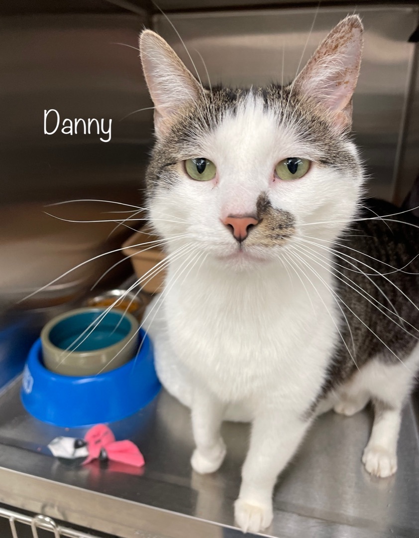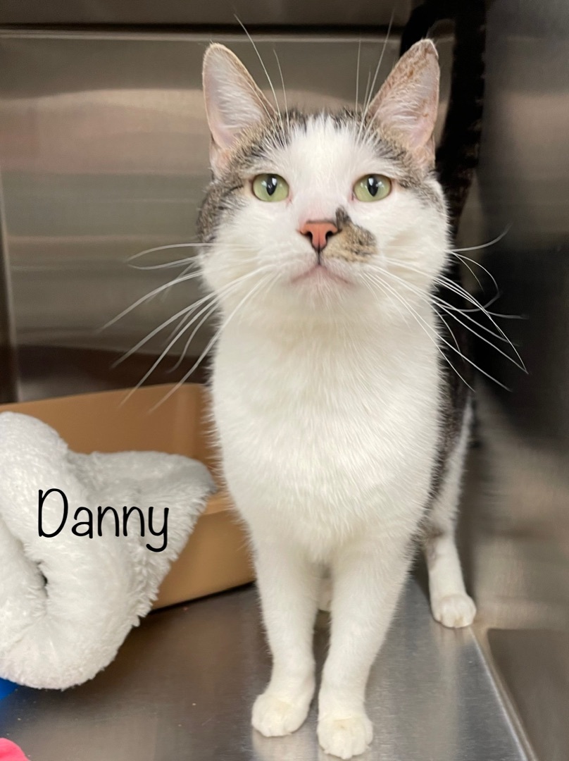 Danny is 5 years old but acts much younger. He loves people, but other cats not so much. We have worked to socialize him with some of our older cats and he tolerates them but hisses if they get too close. He loves to sit in laps and is easily engaged in play with lasers and catnip toys. He is also very chatty. Danny would not do well with small children and possibly not with dogs. If Danny were an only cat, he would be delightfully entertaining. Please consider making an appointment to see if Danny would be the right fit for your family. FIV/FeLV negative * Must be 21 or older to adopt ** Our shelter has a policy to only adopt within a 50 mile radius so that if problems arise the pet can easily be returned to the shelter.