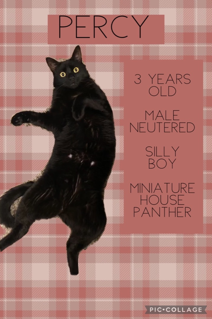 Percy is a handsome, friendly, and playful boy who is ready to find his forever home! He loves a good window seat with a view of the birds and squirrels and he’ll be entertained for hours. He enjoys wrestling with his feline foster siblings and playing with toys. While he may be independent at times, he still begs for your pets and attention. He would do best in a home with other pets to keep him company as he gets lonely when he is by himself. If you are interested in adopting Percy, please visit our website to fill out an application! www.fortheloveofjanerescue.com