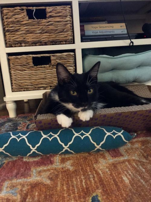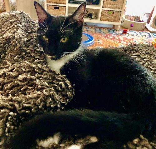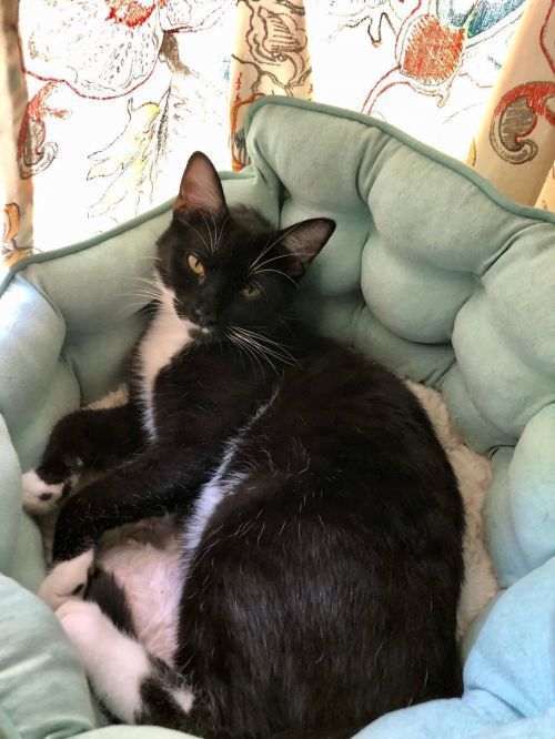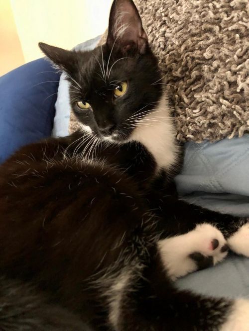 Sweet Benji is an approximately 1 year old male black and white tuxedo cat. He was found abandoned behind a gas station as a kitten. Hes a calm-natured, sweet boy who loves attention and would be the perfect companion to whomever is willing to give him a chance. He is wary of strangers so he needs somebody who is able to give him the time and space he needs to shine. Benji wants to know when he will finally have a forever home because his litter mate was adopted months ago. He loves other cats; he has not been around dogs but should be fine in a home with a dog who knows cats as long as they are properly introduced. Benji has been vaccinated, dewormed, neutered, microchipped and combo tested negative. Please contact Vicky at 864-918-6071 or vick0203@yahoo.com if you are interested in meeting this sweet boy. ******We will consider a foster-to-adopt placement for the right applicant.*****