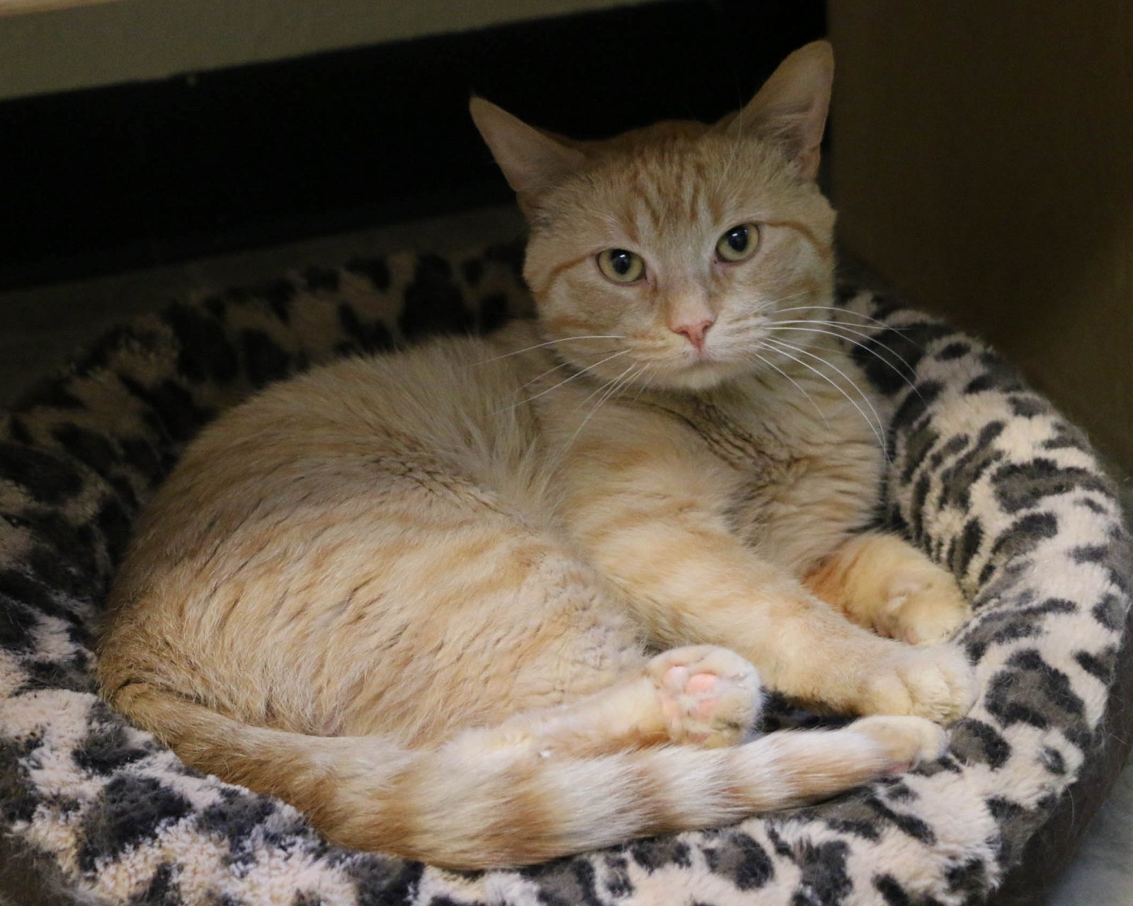 Benny is an adult, neutered male cat, probably born in early 2021. Hes a solid, friendly boy at right around 10 pounds. He likes to wrestle and tackle other cats - theres a lot of kitten in him still. He loves hunting jingly wand toys and toys he can grab and kick. He needs a lot of exercise and attention to burn off his energy. He could probably learn tricks and obediance. Benny also gets worked up sometimes and can be very grabby/mouthy, so he is not a candidate for a family with children. We have him on a medication called fluoxetine to help him level out his impulses while he learns appropriate targets for his play. Hes a super nice cat, just needs some help directing his energy in the right way.