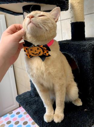 Looking to harvest some love into your home? Look no further! Im Pumpkin Seed. A sweet boy found as a stray. I lived the street-cat life, but now Im ready to live in a safe, cozy home. I love people and especially love attention. While I was outside, I got hurt, so sometimes Im sensitive being pet in some places, but petting my cheeks is my favorite! Come by and love on me! :-)