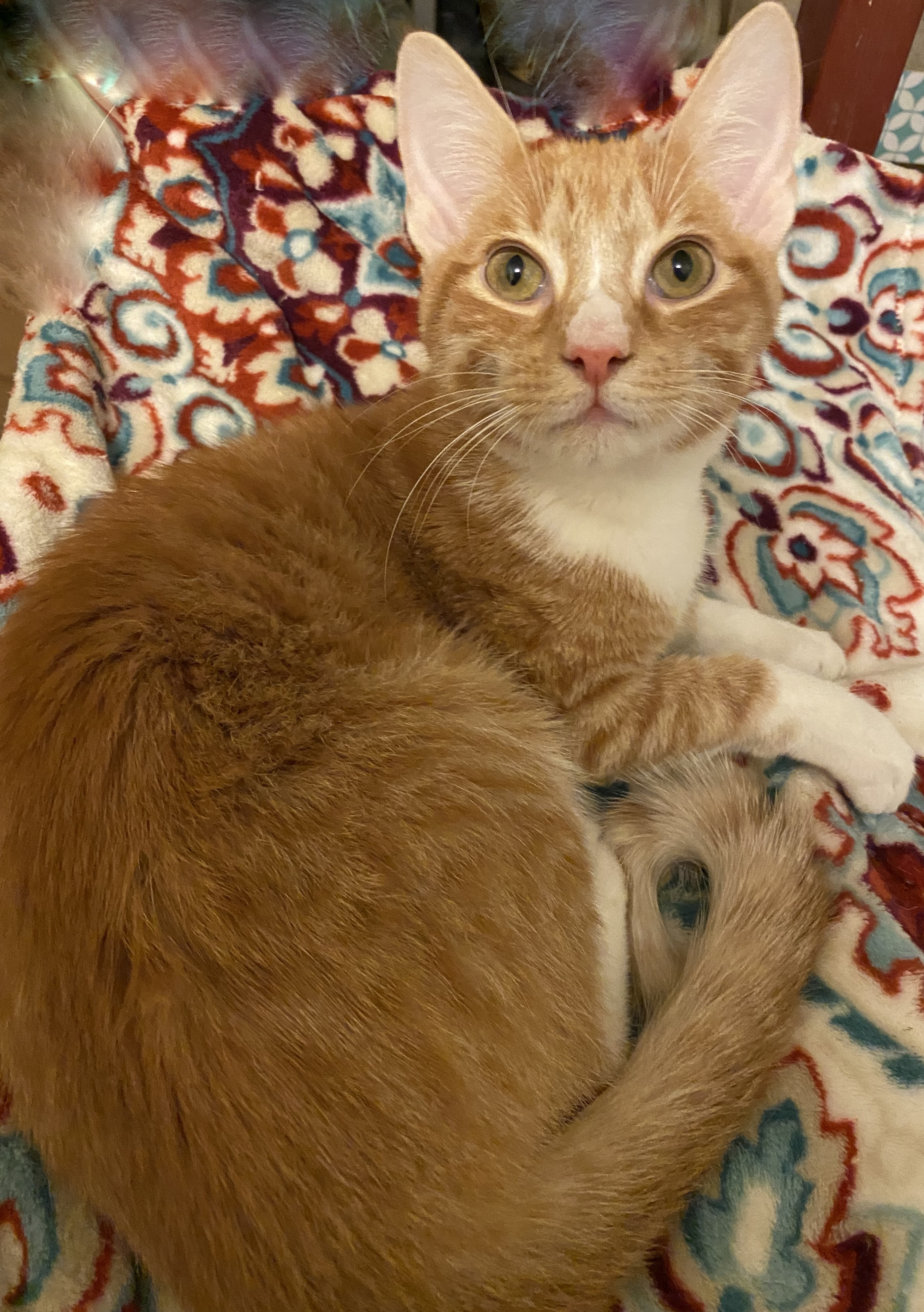 Billie is a playful, curious boy with lots of energy. Billie tested negative to feline leukemia and feline aids, had 2 rounds of shots, rabies, deworming and on flea prevention. He is neutered and microchipped. He would love to have a find a loving furever home! Please call Thundering Paws at 910-224-6068, email thunderingpawsinc@icloud.com, or message https://www.facebook.com/thunderingpawsinc to meet or adopt Billie.