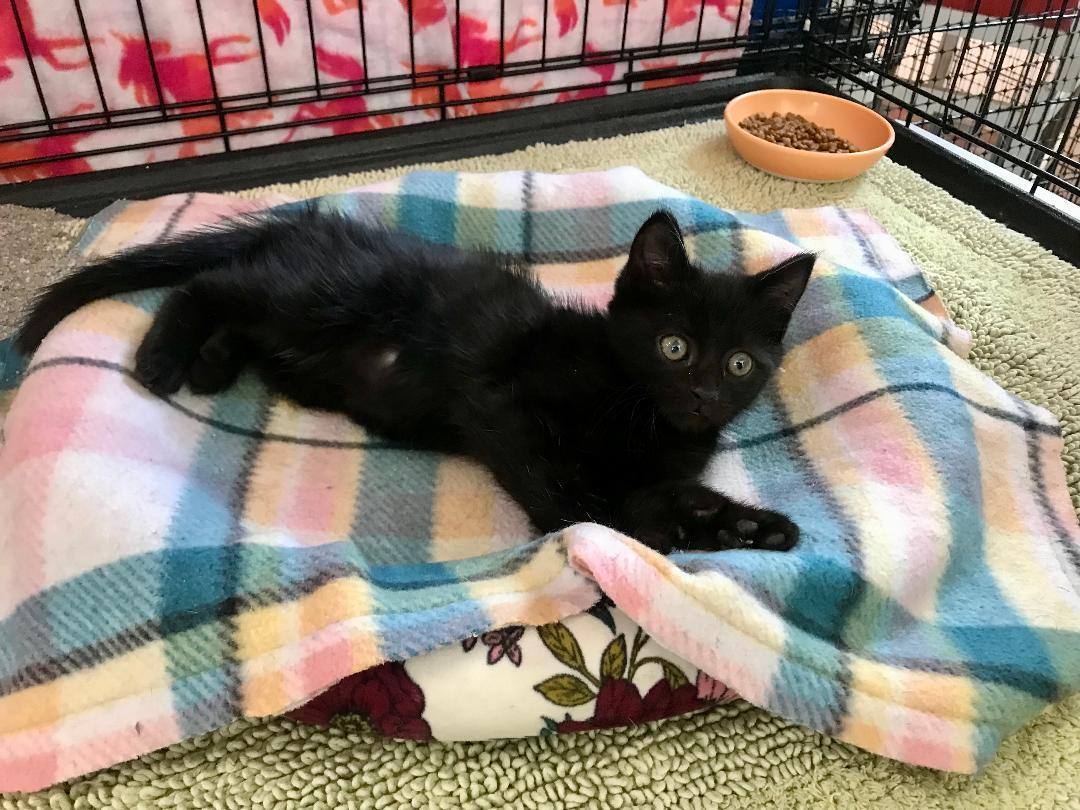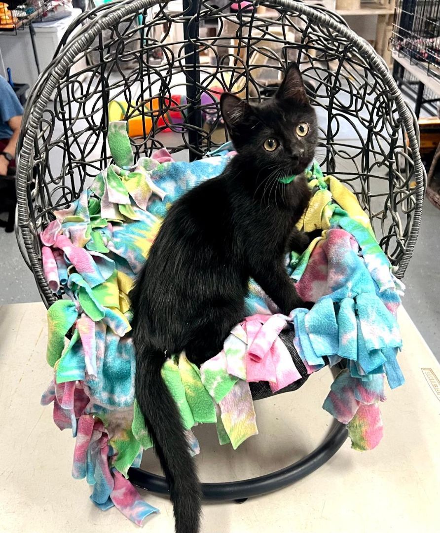 Jet is a confident little kitten who loves to play and doesnt mind the "big" cats. He has been that way since day 1. He was found on a Ranch by himself with no Mother or siblings around. He is sweet, playful and full of curiosity.