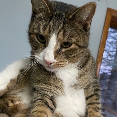 beautiful white/orange/brown stripy belly (one of his favorite things to