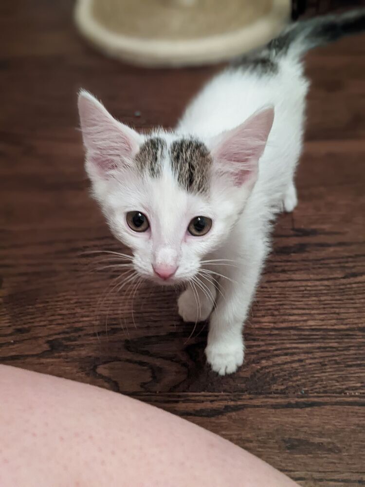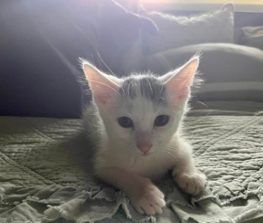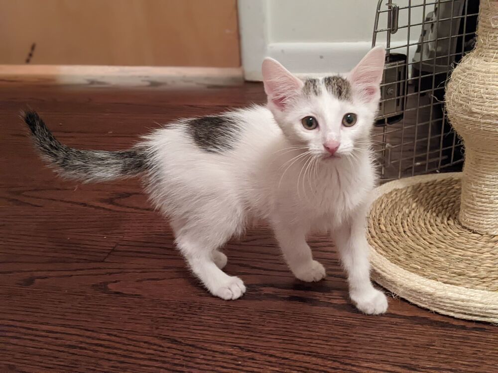 Eddie and Elmo were born on April 30. They are litter-box trained, socialized, and ready for their forever home. They are bonded and therefore should be adopted together. They love to climb and jump on their cat towers, then snuggle together, and are full of fun, high-energy, kitten mischief. Eddie loves to be held and sit on laps. Elmo is a little more independent. Elmo and Eddie will steal your heart!