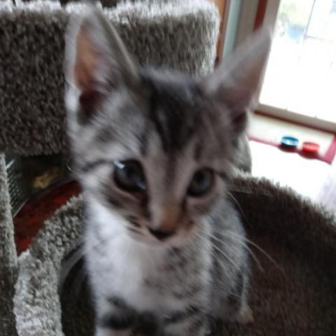 Rascal is a sweet and cuddly boy who likes to run around and play on his tree house. He also enjoys lap cuddles. Rascal is accepting adoption applications now.