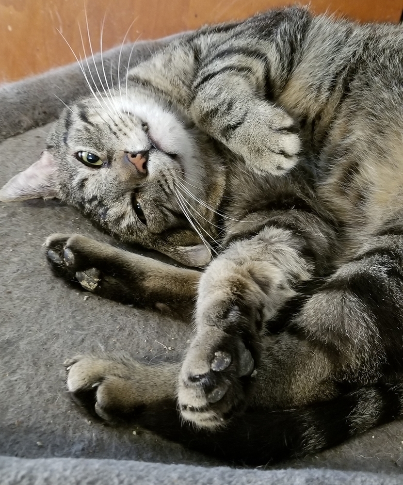 Spencer came to us from the trailer park we have been working with. He used to belong to a resident there but unfortunately, his owner passed away. His kids came for all of his belongings but tossed Spencer outside and left him to fend for himself. He was outside for several years and is having trouble trusting people again. We are confident that Spencer will remember what it was like to be loved but he is still a little hand shy. He likes other cats and would love to find a family willing to give him the love and patience he deserves.