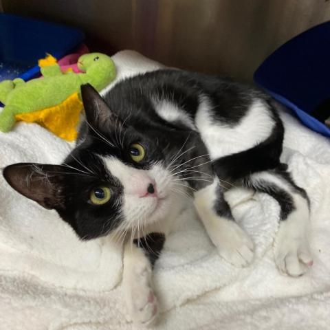 Panda is so special! What a sweet and loving boy he is! He just wants love and attention. He came to us as a stray cat who had a broken jaw! We repaired his jaw, which was a process that took over a month and a few procedures, but now he is totally recovered, eating well and ready for his forever home! He would do well as an only cat with someone who is home a lot, or with another sweet cat.