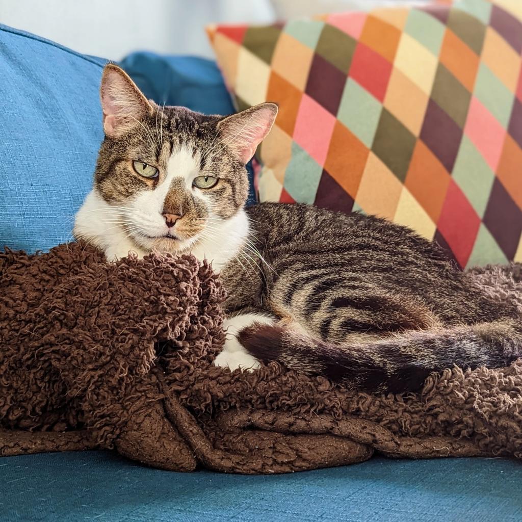 Oscar is a gentle 9 year old man. He has a grumpy face but loving heart! He might be a little shy, but he still loves snuggles (and his heated bed)! Hes a very low-energy but he enjoys playtime with string toys. He also LOVES catnip and will spend quite a long time rolling around in it. But most of all, he just enjoys sleeping near his favorite people. He has been neutered, microchipped, dewormed, and is up-to-date on vaccines. If you are interested in meeting Oscar, please submit an appointment request here (copy and paste the link into your web browser): https://airtable.com/shrDYBWsfkswOD5KV Current Age: 9 years old Current Weight: 8.36 pounds
