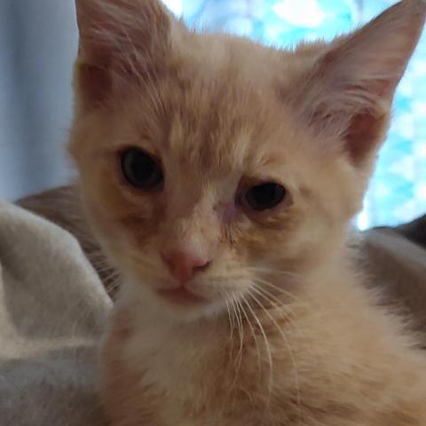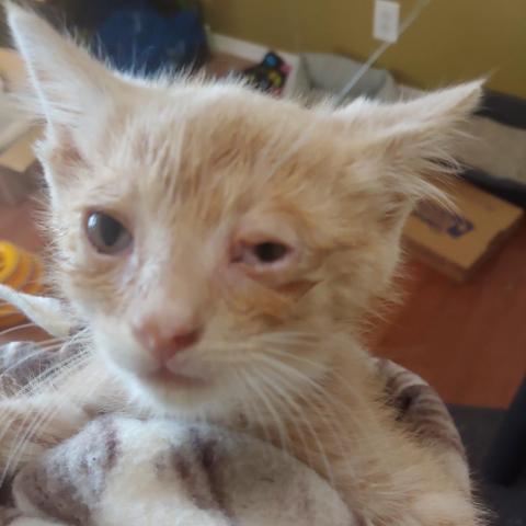 Mr. Bud is a very energetic boy. He and his sister Gardenia were found in a feral colony off State st near Eagle. They both had very bad eyes and he almost lost one. With lots of care and love they recovered and eye surgery is not needed. His eyes do water from time to time and he is very good at keeping them clean.