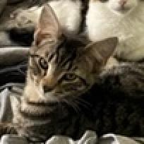 Banner is a male tabby kitten. He is a bit shy and independent compared to his siblings. He loves to watch as his siblings go wild around the room and will play a bit (especially with anything that looks like a fish) but most enjoys finding a nice warm corner and taking a nap. He will purr while you hold him and gently scratch his chin and throat. The Fourth of July kittens were born on approximately April 15, 2022. They were born in a womans backyard and were living outside for the first 9 weeks of their life before they were rescued and brought indoors by 4Paws. They have been dewormed, deflea-ed, and are currently receiving their distemper vaccination series. They will require their rabies vaccination at 4 months of age. ++++++ Please note: 4Paws will only consider local adoptions (Northern VA / DC / MD metropolitan area) 4Paws does not adopt to students All kittens under 6mos of age must be adopted into a home that already has another young cat/kitten; otherwise, must be adopted in pairs with a littermate