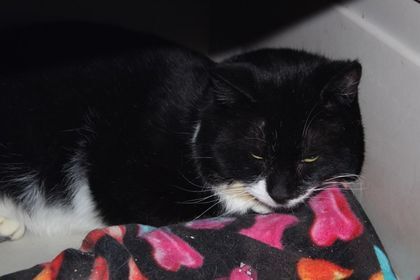 I am just recently warming up to pets and attention and I know in time I will become more confident and comfortable. I enjoy spending my days lounging on cat beds, hanging with my kennel friends. I am a pretty chill guy who enjoys lounging around most of the day. Teddy is sponsored by The DeSoto Family. He is a little over 2 years old. Other cats, encouraged. No dogs, and no children.