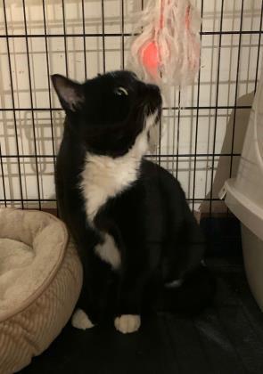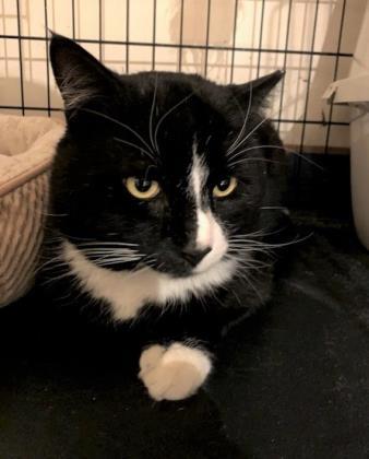 Jairo has the most unique markings on his gorgeous black coat. Just look at that face! And his little white mittens complete the look. Jairo is affectionate, mellow and gentle - a total sweetheart! He just loves it when you show him affection and will let you pet him forever. He seems so comfortable in his foster home, we think he was a house cat who was abandoned. Show him some love and hell love you back! Jairo is FIV positive. He can enjoy just as long and healthy a life as non-FIV cats with good nutrition in a safe, loving home. He was born around 01/20/2020.