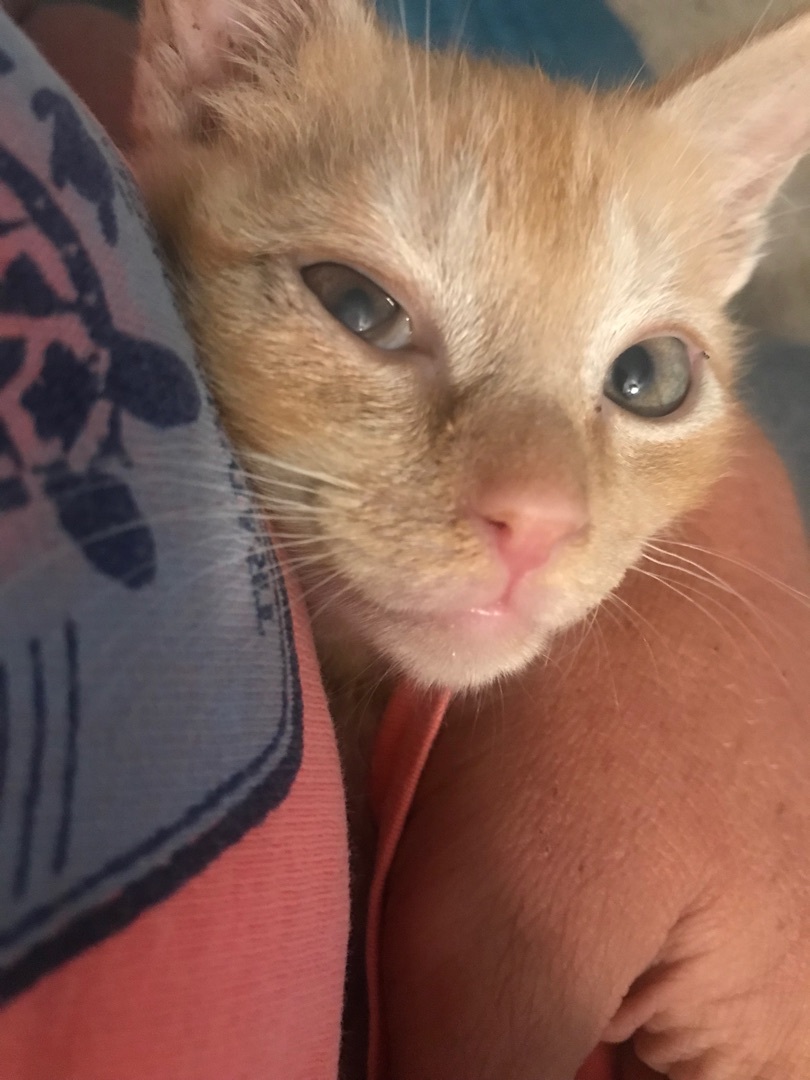 Jimmy was found in a ditch with one of his eyes swollen shut and he was covered in fleas, his eye is healed now but does have a little scarring on it, it doesn’t slow him down any though! He’s fostered in a home with kids, cats, and dogs, and loves everyone! If you would like to meet this sweet kitty and set up a meet and greet for potential adoption, please browse to misplacedmutts.com to submit an application. Young kittens very much thrive in pairs, and priority will always be given to applicants looking to adopt 2. Please inquire about special rates for adopting a pair of kittens. Misplaced Mutts is a 501(c)3 non-profit, volunteer-based organization dedicated to rescuing dogs and cats in shelters and less than ideal home situations throughout North Carolina. We are based out of Carteret County. Adoption fee includes age appropriate vetting including vaccines and deworming. Low cost spay/neuter vouchers are available upon request (sterilization is a requirement of adoption).