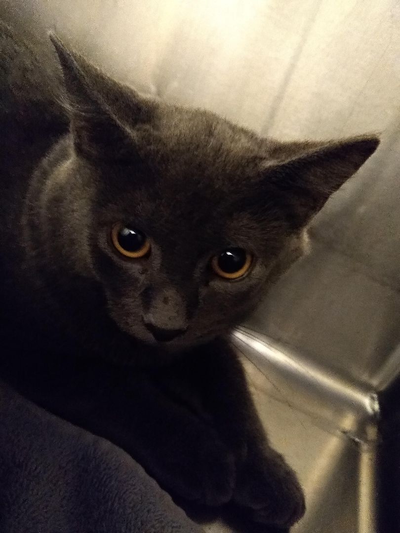 Rescuer trapped Thunder outside with sibling (Lightning)- surrendered to clinic to get vetted and adopted out. Adoption fee $155 ($248 for two kittens) includes all vaccine boosters, combo test (Negative), deworming and spay/neuter. Come by to visit anytime between 9am-6pm M-F and 8am-12pm Sat- 5155 South Old Peachtree Rd, Norcross, GA 30092.