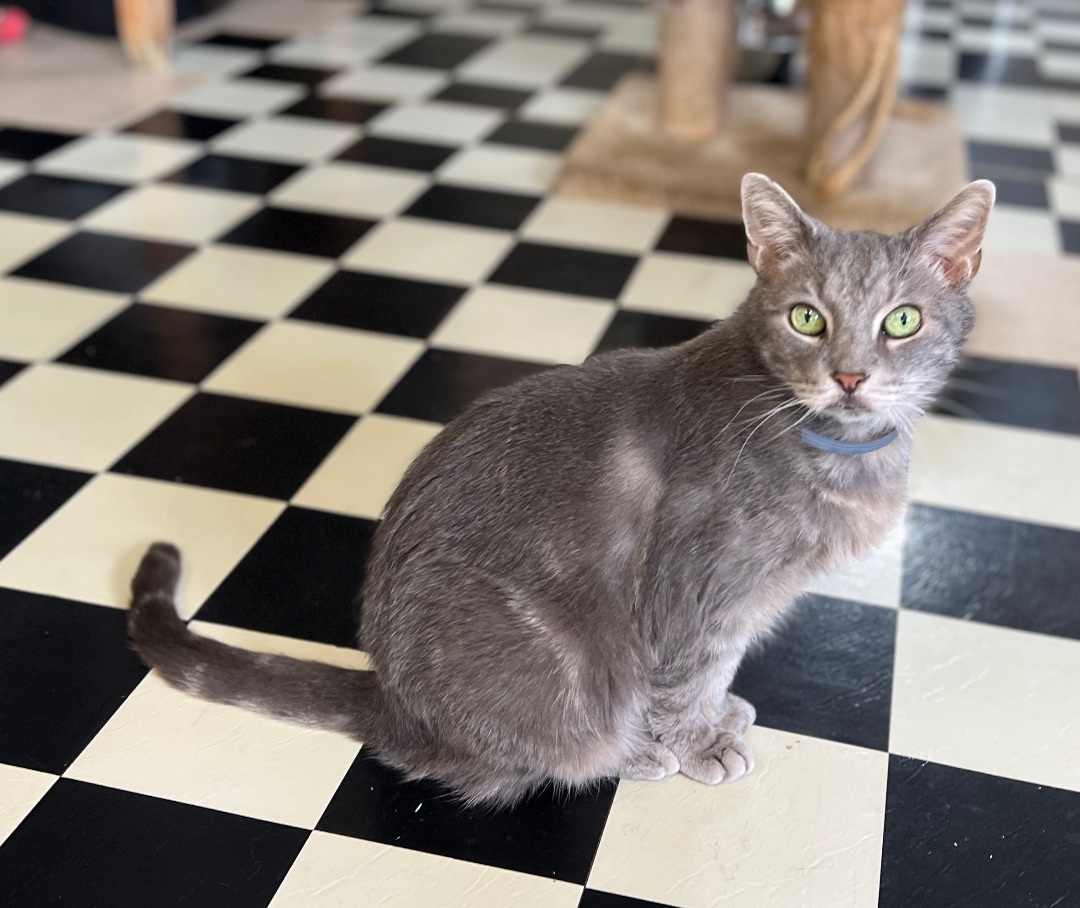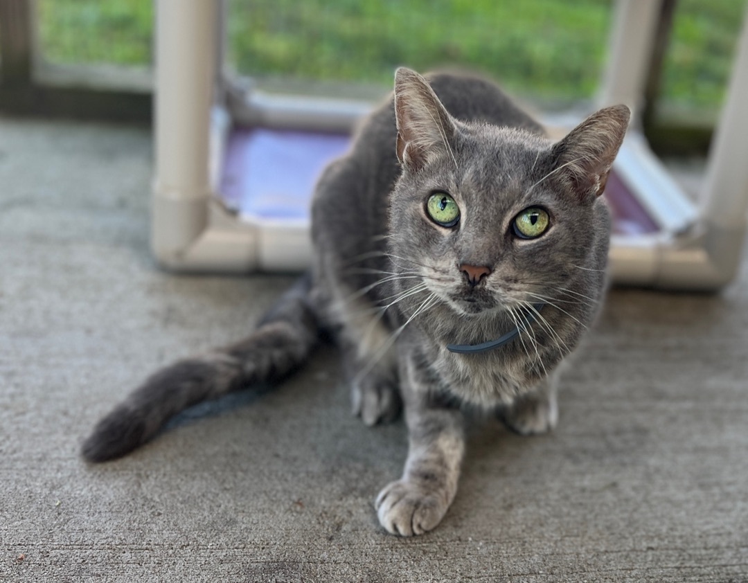 I’M NERVOUS AROUND STRANGERS BUT I LOVE MY FRIENDS! THE BASICS: DSH, gray SENIOR MALE; EST DOB: November 2008 ARRIVAL: March 22, 2019 HISTORY: Jack was surrendered to us after his owner went to an assisted living facility. At first, jack is incredibly shy. He will stay on top of the cat condos and watch from afar. Once he’s gotten used to you, however, he does a complete 180. Jack will meow at you and come down to the floor to greet you. He is also an unexpected lap cat. Though he will generally defer to the more assertive cats when it comes to hopping on laps, if your lap is open he will eventually make his way over. Jack really values the time he spends with his chosen people. With a little time, patience and focused attention, one of those chosen people could be you. Summer 2022 Update: Jack can be found resting on the screened catio or on top of one of the condos in the Senior Room. He is still a little bit shy, but once you’ve spent some time with him, he will come to you wanting head scratches and may even hop in your lap. He would probably be best suited to a home with no small children, as he doesn’t like loud noises or quick movements.