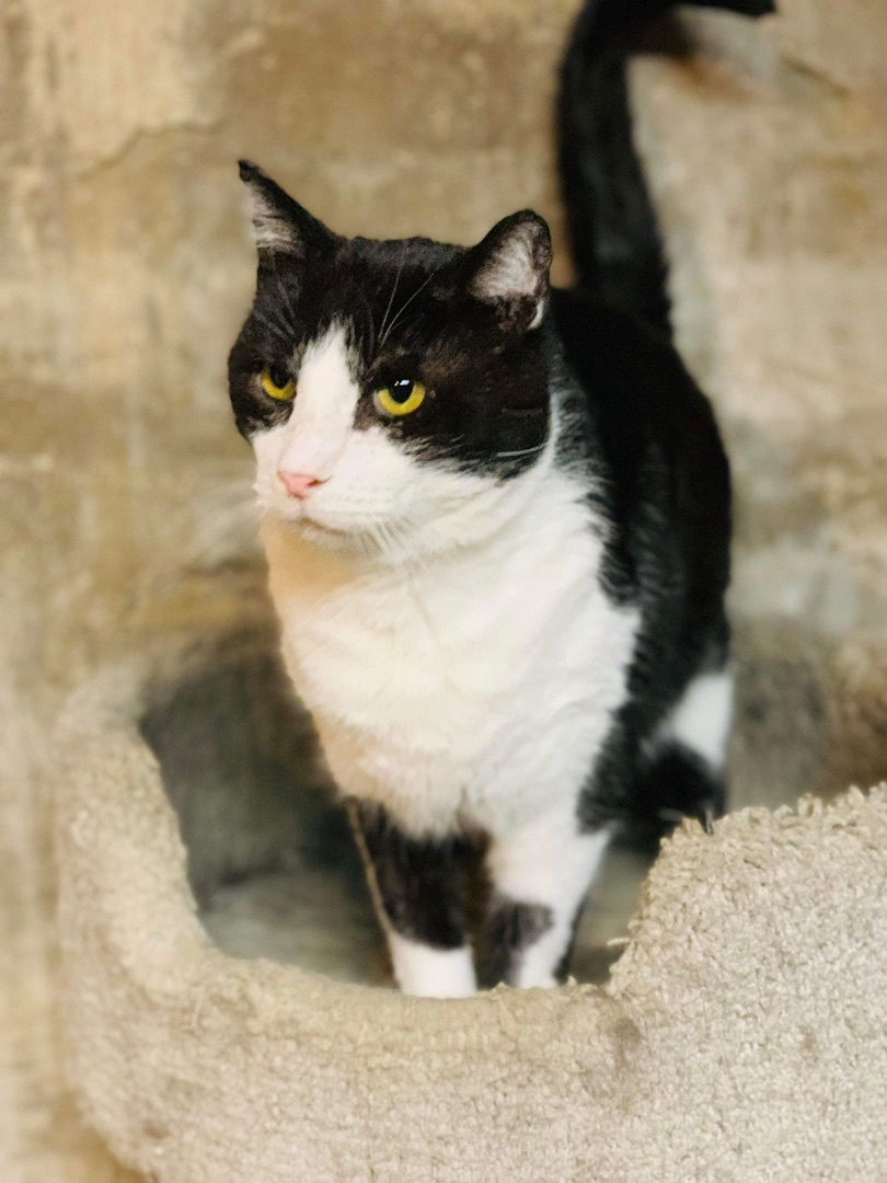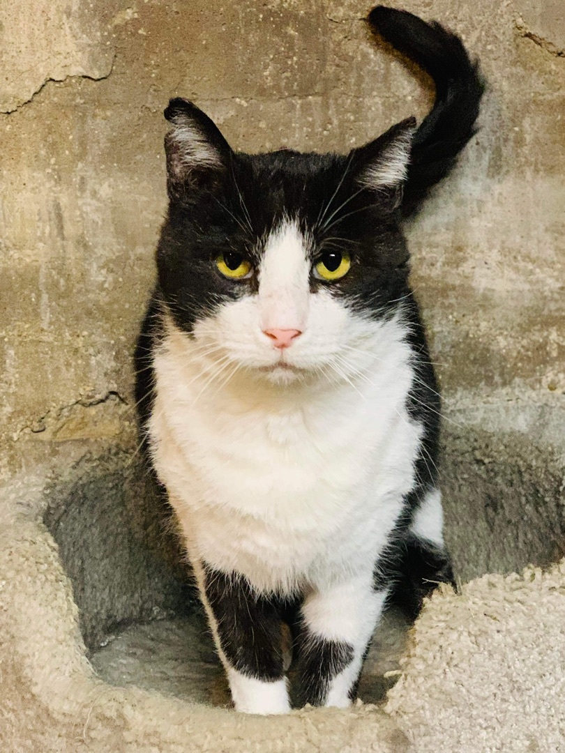 AGE: Adult - Approx 3-5 years DESCRIPTION: DSH Black and White LOCATION: PETS Shelter (114 W Main Street) - Panora, IA MY STORY: Hector has quite the story to tell but we hope this story will help him get his forever home where he is safe and loved. Several years ago, Hector ended up in a live trap at the Historical Village in Panora. He was taken to the low-cost clinic, vetted/chipped, and named Hector, but he was EXTREMELY wild so we released Hector back into the area where he was trapped knowing he had access to food and water and shelter, if he wanted it. Fast forward a year later. A woman contacts our shelter about a friendly cat hanging around her house but scaring off her barn cat. Plus, he keeps trying to get in her house and with the very cold weather (it was winter and sub-zero temps) she was worried he was in trouble. Our volunteer went out to get the cat but he took off when he saw her so the lady said to leave the carrier and she would get him. Our volunteer hadnt even gotten home when the phone rang and the lady said, "Got him!" When our volunteer took him home, she looked at him and thought this cat sure looks familiar. He wasnt too happy so he had to chill out in a cage for a while. Once she was able to scan for a chip, we found a chip and discovered this was Hector! Hector soon warmed up to his foster mom and was doing fantastic but we were just not sure if he could be adopted into a home or should perhaps be a shop cat. A shop home opened up and so we let this beautiful boy go to his new home...only for everything to go completely wrong. Hector hid in fear from them for days and then one day he just disappeared. It made no sense and we couldnt find him anywhere. His foster mom suspected he was in the ceiling but he wasnt answering her and there was no sign of him anywhere...plus there was only a tiny hole into the ceiling. A live trap was set on the floor and food left out but it wasnt touched. A week goes by... The family decides to get more shop cats. A few days later, they hear meowing in the ceiling! It was Hector! He was still there but was in bad shape. His foster mom drove 1.5 hours to the shop and said she wasnt leaving without him. After about an hour of coaxing and calling, her sweet foster boy come out of the darkness and to her hand in the ceiling. She grabbed him tighted and pulled him out not letting go for fear she would only have one shot. Hector was finally safe and back in the arms of his foster mom...and he was soooooo happy. All the ride home she told him how much she loved him and had worried he was gone forever. She would never let anything like that happen again. Hector is slowly getting back to the big, beautiful boy he once was. He is starting to play with toys and really loves his play tunnel. He is good with the other foster kitties that live with him. His foster mom wishes she could keep him but there are just so many kitties needing help that if the right home would come along for this wonderful kitty, she would let him go. This time, it must be an inside-only home where he is part of the family. Adopter must be very cat-savvy and willing to go very slow and work with this kitty. A home visit might be required. Hector really is that special! If you have questions about this kitty, please message us and his foster mom will get back to you. If you are willing to commit and give this boy a home, you really wont regret it. Hes fantastic and so handsome. MORE DETAILS: Inside-only home and must keep claws. The adoption fee for this kitty is $100. Adopt a pair of kitties for $150. Each cat and kitten has been: altered (spayed/neutered), vaccinated (age-appropriate) - rabies and distemper combo, microchipped, tested for FeLV (negative unless previously noted), and treated for fleas, ear mites, and worms. We ask that interested parties fill out a cat adoption questionnaire only if you are seriously considering adopting this sweet kitty. You can get the application by going to our website at "http://www.panorapets.com/adopt" and clicking on the "Cat Adoption Questionnaire" button at the top of the page. Once you have submitted the questionnaire, an adoption coordinator will contact you usually within 24 hours. Please be patient and thank you for your interest in this kitty. P.E.T.S. supports the "Paws Need Claws" Campaign. Cats are rather attached to their claws; please do not de-claw your cats.