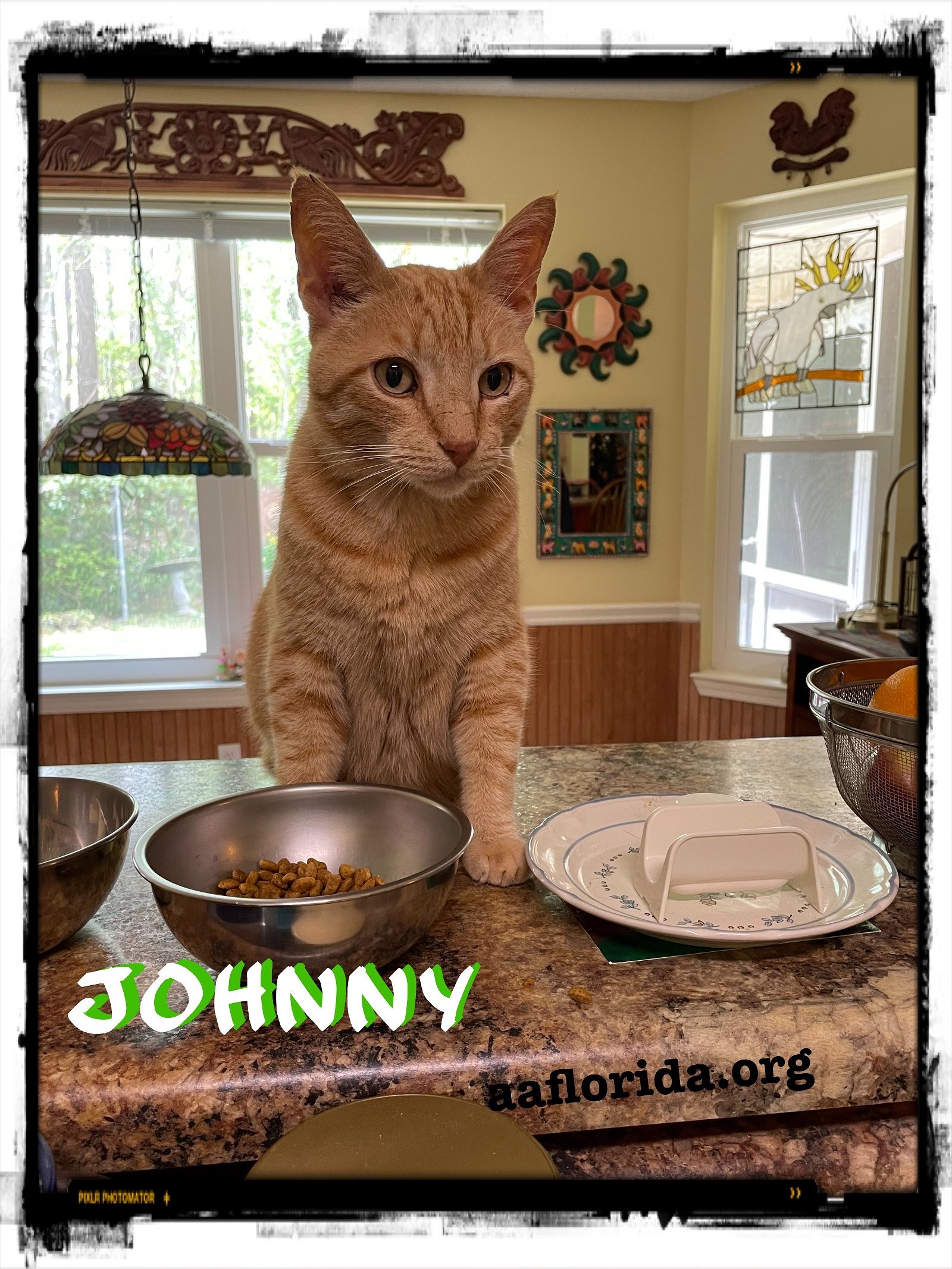 Please consider sponsoring a cat. For a little as $10 a month you can help us help more animals in need.Johnny is a sweet 11 year old Ginger boy looking for a new home. His humama passed away and his dad has entered assisted living. Johnny gets along with dogs and female cats, but doesnt like his male foster cat brother so we think Johnny would best in a home where he is the only male cat. Johnny is a good mouser and is really hoping to find a place where he can quietly live out his senior years. Our adoption fees are $75.00 for any kitty 6 months of age or older. $85 for kittens under 6 months of age. Included in each adoption: age appropriate shots, microchip, and spay/neuter surgery. All kitties are litterbox trained. Prior to meeting or adopting any of our wonderful kitties, we ask that you please fill out our online Cat Adoption Application on our website aaFlorida.org/adopt. There is a link on the top of the home page. Click on "Fill in", you dont have to register. For more information about this kitty or any others, you can contact us at Adoptions@aaFlorida.org. We are a foster organization and dont have set hours we are open - but we will gladly set up an appointment for you to meet any cat. Of course, youre under no obligation to adopt if you come to meet any of our fabulous felines.