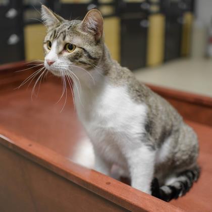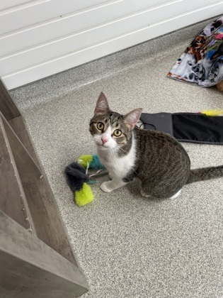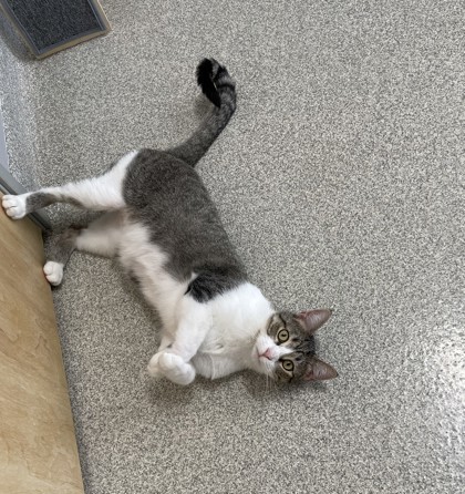 Meet Willy! He is a 1 year old, Domestic Short Hair Cat. Willy is a very playful cat who loves attention! He is one of seven in our cat community room and anytime you walk by or go in the room he is roaming around finding the next toy he can play with! He truly loves attention and will do what he can so you dont leave the room without him even if its laying in front of the door. Willy is neutered, microchipped, and up to date on vaccines. Stop by today to meet him!