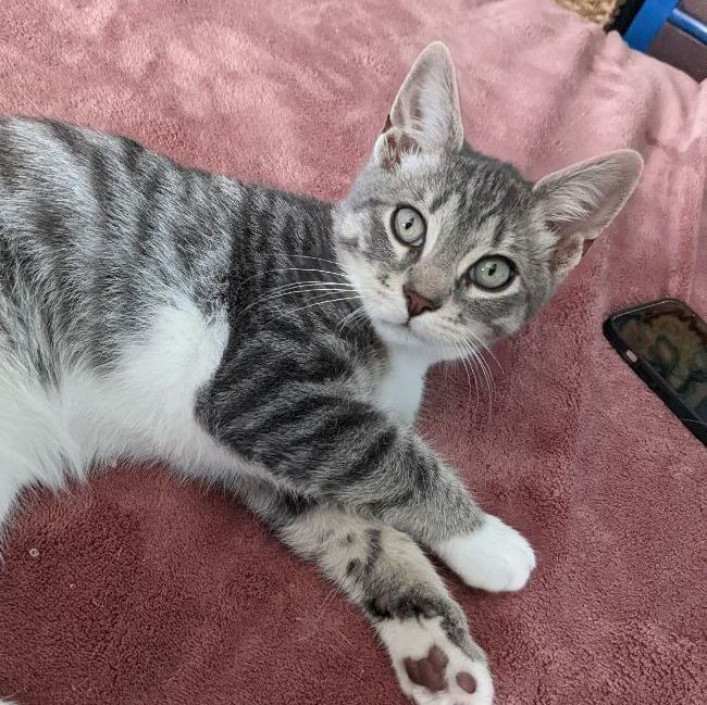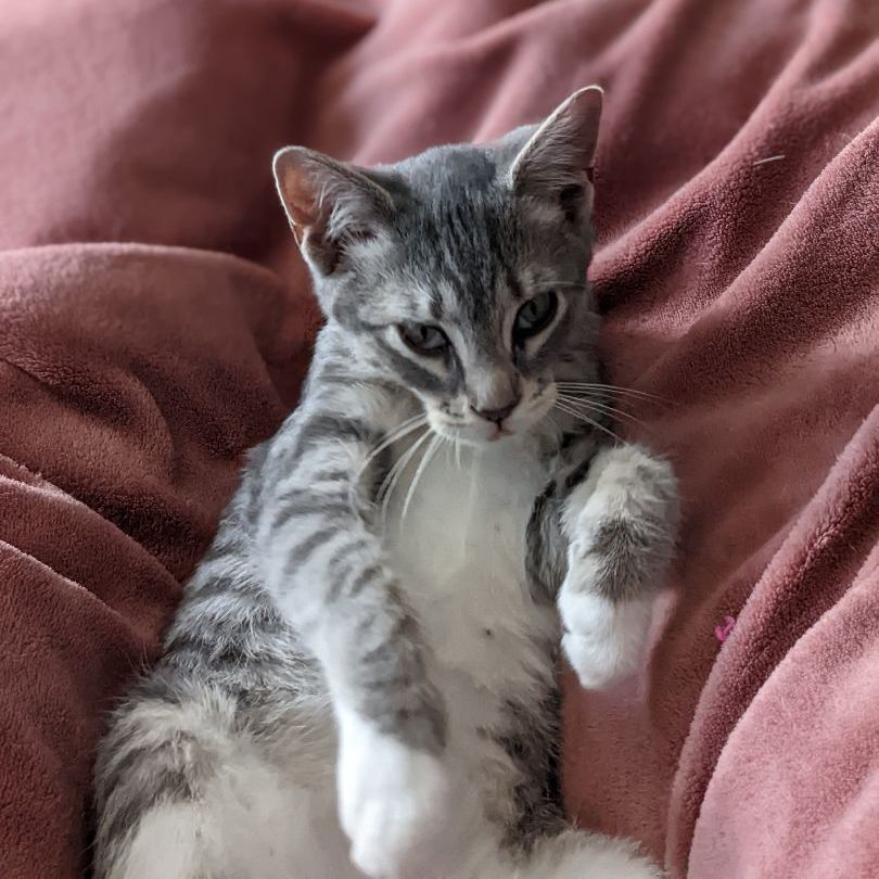 The Incredible Hulk is such a sweet little man. He likes to sit on laps and take naps in sunbeams. He is quite a mamas boy and can frequently be found cuddling with his mama cat, Scarlet. He’s also very cat friendly and has made fast friends with the resident cats of his foster home. He likes to explore nooks and crannies and bat around toy mice. Hulk would thrive in any family that wants a snuggly kitten. He has been comfortable around other dogs, cats, and children, but he needs a few days to warm up and adjust. Hulk is about 4 months old, neutered, vaccinated, and microchipped. Apply to adopt at charliesarmy.com/apply