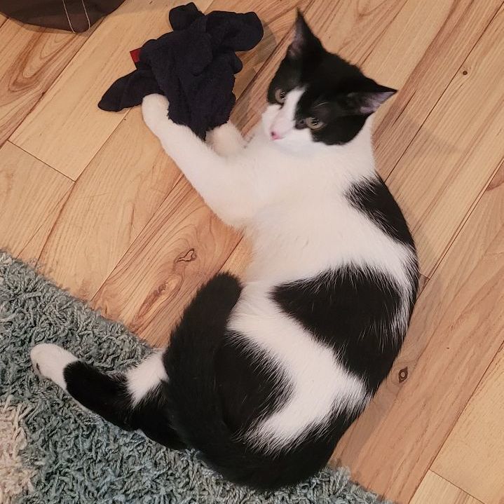 Sugar, or Shugs, is an adorable little guy with a super sweet demeanor. He loves to play and is constantly chasing toys and wrestling with his siblings. Sugar loves affection and will often show his belly and give his foster mom lots of kisses. Sugar is 6 months old, neutered, vaccinated, and microchipped. Apply to adopt at charliesarmy.com/apply