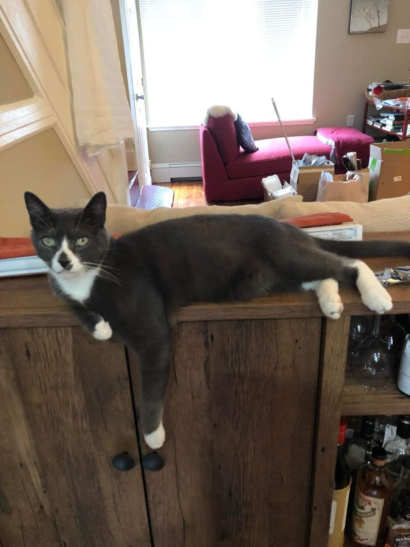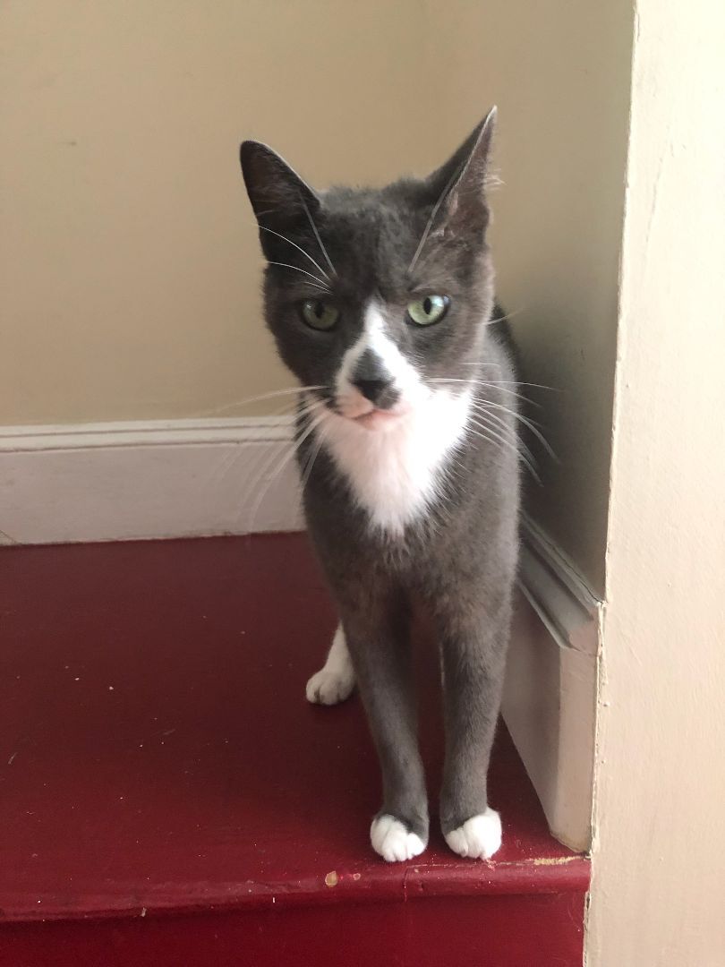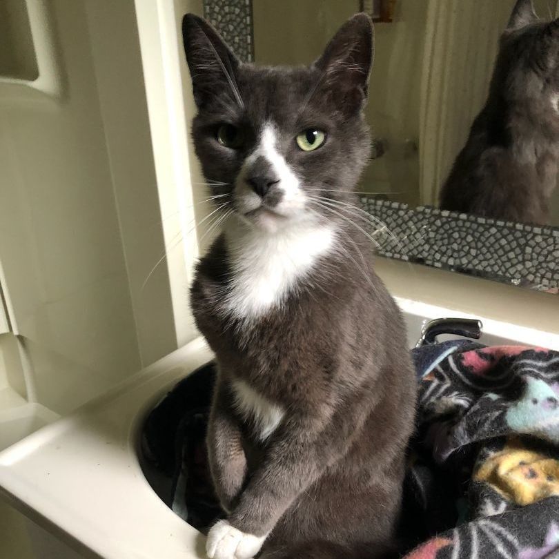 This handsome grey and white tuxedo is Manton, and hes ready for a home to call his own! Manton would definitely prefer a home withOUT other cats or dogs... he wants to be king of the castle! Manton is a total love bug who will tell you all about his day and who loves to lounge in the bathroom sink. Manton is 3-4 years old, neutered, vaccinated, microchipped, FiV/FeLv negative. Apply to adopt at charliesarmy.com/apply
