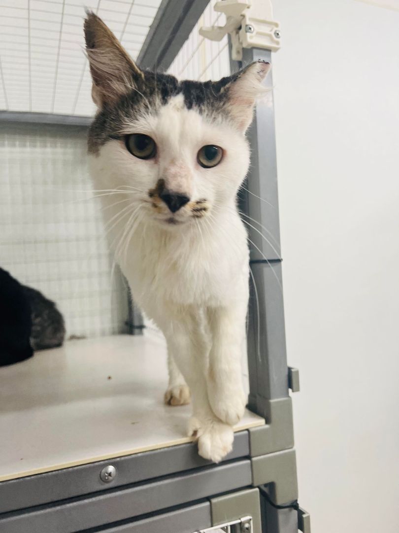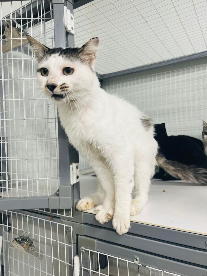 Toad does have some scars from before his time here, but that doesnt stop him from being a big sweetheart who loves to get attention and pets. We believe he is around 3-4 years old. He does well with other cats. Toads adoption fee is $30. He is already neutered.