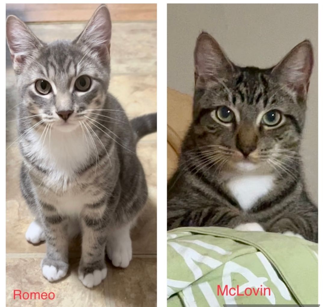 McLovin and Romeo are 10 month old bonded siblings. They’re affectionate, sweet, playful, energetic, great cats, and must be adopted together. Both are microchipped and up to date on shots. They’re negative for fiv and felv. A home visit is required. Adoption fee for the pair is $275. To ask questions or request an application, call or text Melissa at 401-742-6086.