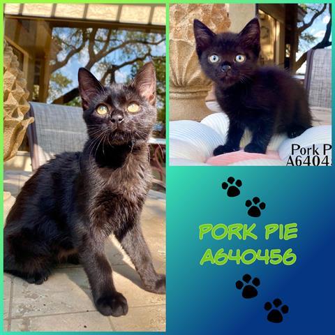 Special Needs Baby: Meet Pork Pie, he was part of our English Bakery litter! He is so sweet and affectionate. He is friends with all our resident kitties and dogs, and loves to run and play with them. He also loves to curl into a shrimp shape and take an excellent tiny boy nap. He loves to chill on the bed or couch with his family as much as he loves to run and play with his siblings. He is also a champion purr machine. Pork Pie was the tiniest of all the baked goods, despite his nickname Porky, and now we know why. He has a mild case of Megacolon. This gives him trouble with potty time, as he doesnt know when he is finished going, so sometimes there is a tiny escapee! He cant help it, its his Megabutt! He has excellent litter box manners otherwise. Porkys doctor says they are hopeful his daily meds and maturity will help him. There is also a surgical option that could possibly help if the meds do not work. But, there is a chance it will never go away. So his future furpawrents must be able to help with daily meds for now, but also be prepared he may always have this minor bootie issue. Pork Pie is looking for a special family that can handle his special needs! Are you that family? Reach out to us if you are interested in this special baby, and we will have his foster family tell you more about him. He is an amazing little personality and needs a chance!