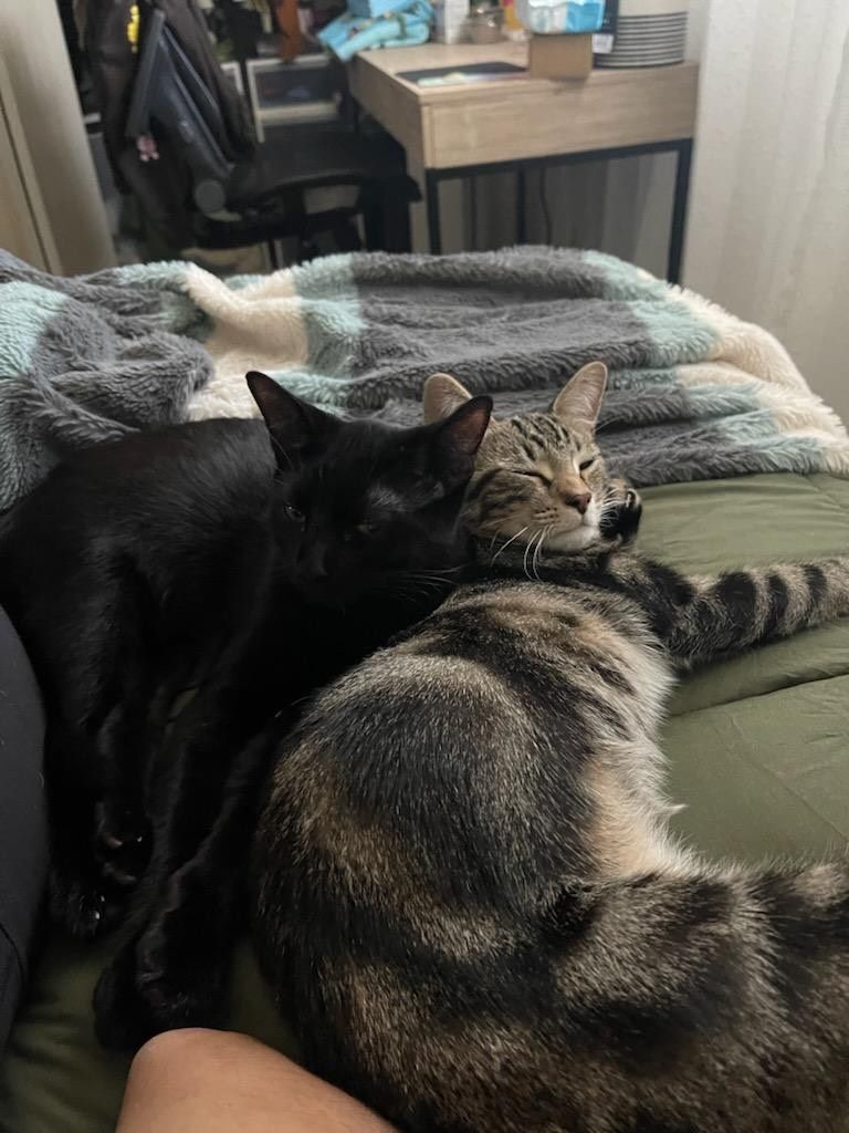 A few weeks ago, a young couple moved onto a new property in Paso Robles. They slowly made their way through the old sheds on the corner of their vineyard, cleaning them out as they went along. To their surprise, they found a large hole in the corner of one of the sheds and litters of small kittens scattered throughout the old supplies. The kittens and their mom went into foster until they were old enough to be adopted! Merlin (dark brown tabby) is a confident, curious, and playful guy! During playtime, he loves to climb on anything and everything. He was born to explore. Merlins favorite toys are balls with a bell inside or his siblings. He plays hard, and sleeps hard. Back scratches are his kryptonite and will put him right to sleep! Sirius (black) is more reserved and takes a little to come around but he is very sweet. He has a quieter purr but an adorable little meow once you stop giving him attention. He’s starting to be more of a lap kitty, when his brother isn’t on your lap already. His favorite time to accept love is in the mornings he will rub all over you and give his little meows. He loves to tangle himself up with yarn and string toys. At the end of the day, you can find him snuggled up to Merlin in a soft blanket. They both enjoy playing with their toys (their favorite is the tunnel), chasing each other, and looking adorable at nap time. These two have a lot of love and snuggles to give! *They require a special GI diet to avoid upset stomachs.