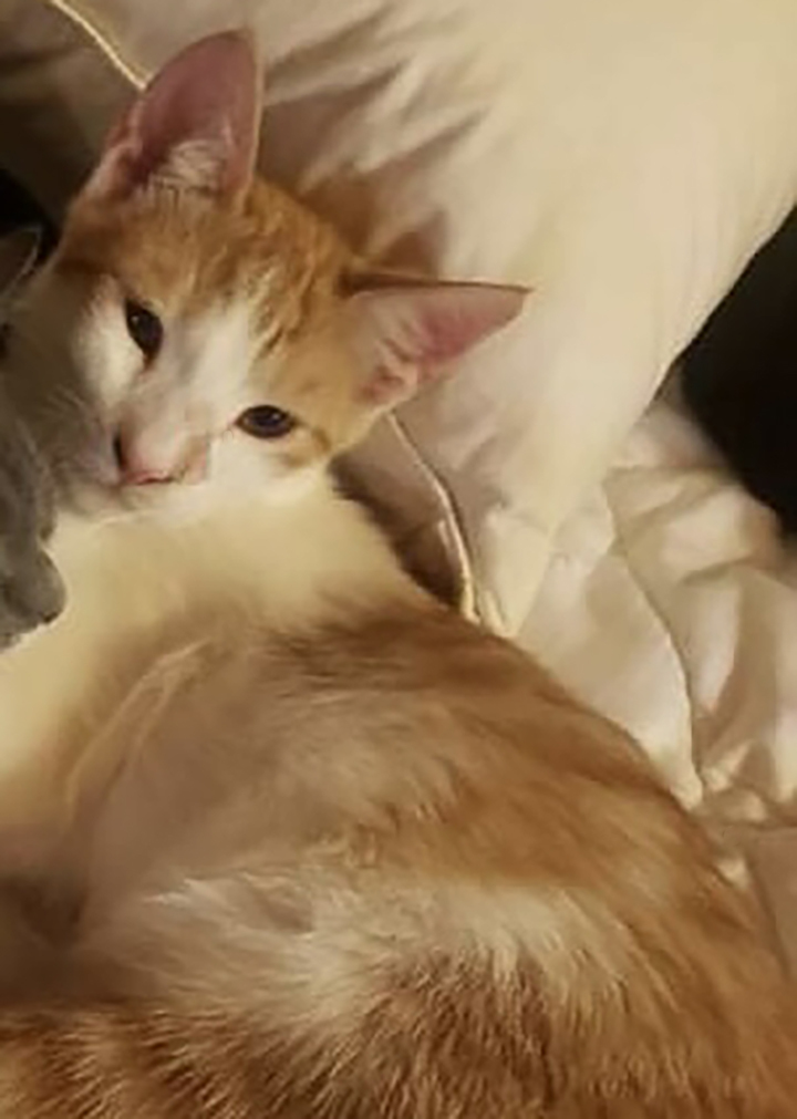 A citizen found and brought Harry and his sister, Meghan, to Devore Shelter in April 2021 when they were tiny babies, too young for the shelter to accept into their care. Thankfully, one of our members present at the shelter that day intercepted them. Once home, he bottle-fed them until they were weaned and able to eat on their own. Later, he requested their acceptance into our foster care program. Of course, we happily agreed. Harry has grown up to be a handsome orange and white tabby boy who is curious by nature and loves to be involved in everything going on in the house. Hes an amiable guy who, if he were human, would offer you a seat and regale you with stories of all his adventures and life insights. Always seeking the spotlight, Harry relies on his playful antics to provoke laughter and loves to be the center of attention. He has an ease with other kitties and dogs, but in the end, he loves his sister, Meghan, best. Harry and Meghan are a bonded pair. Wed like them to be adopted together as its critical to their long-term happiness and well-being. If you are interested in adopting Harry and his sister, Meghan, fill out an adoption application for them today at www.kittydevorerescue.org!