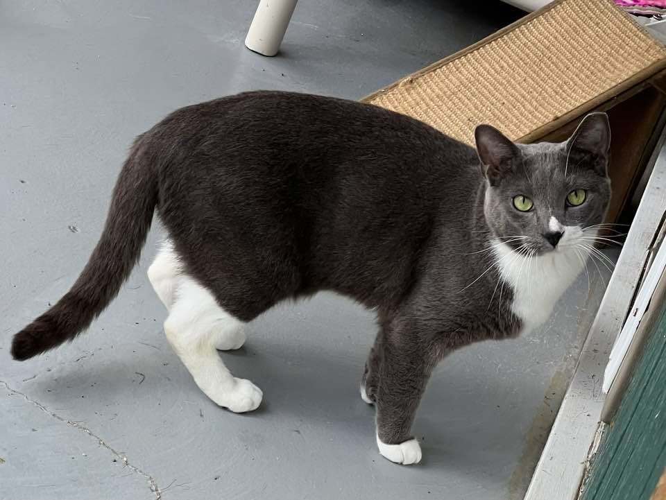 Satchels Last Resort adoptions@satchelslastresort.orgGracon is a gorgeous young gray and white cat. Hes as cute as he can be. He is a playful boy who just hasnt warmed up to humans yet. He enjoys treats and playing enthusiastically with his toys. He uses the litter box and gets along with other cats. In fact, he sometimes enjoys cuddling with other cats. If you can accept him for who he is, Gracon wouldnt be any trouble. In time, he may even surprise you by becoming more social. He is young (estimated to be approximately 3 years old), so he has time to come around. If you are the type who has plenty of patience, perhaps you can earn this boys heart. For an appointment to meet Gracon, please submit the adoption application (no commitment) found on our website, www.satchelslastresort.org, and an adoption counselor will get in touch.