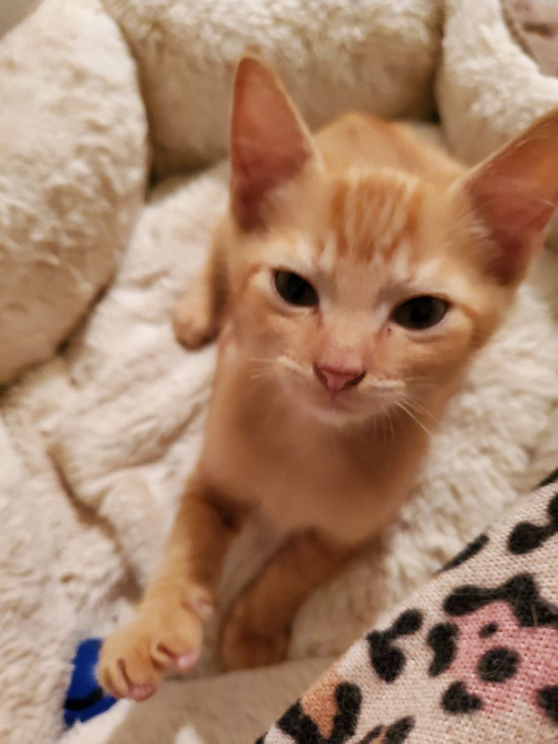George came from a hoarding situation. He is very sweet, very shy at first but very loving & super playful.