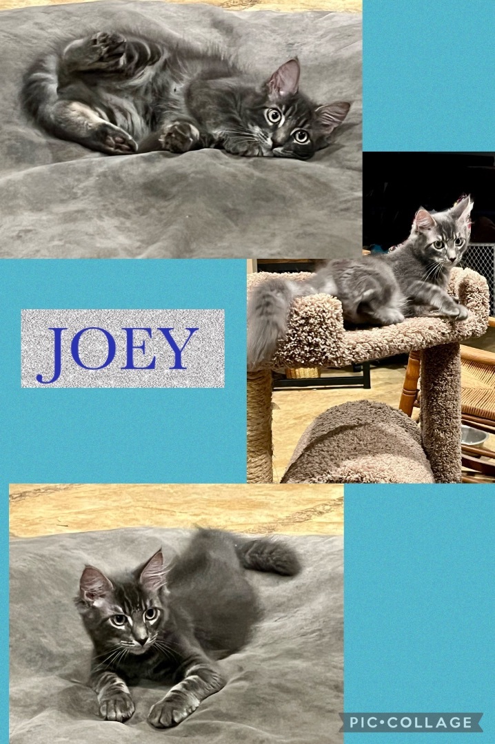 JOEY is one of 4 kittens. He was born on 5/23/2022. JOEY is high energy. He requires a lot of attention. He is friendly and craves attention. JOEY is available for adoption now. He is friendly and playful. JOEY loves attention. He will be a wonderful addition to your home. At this time, the mom cat has not been tested for FeLV/FIV. The kittens are too young for a test to be accurate. Since JOEY will be too young to be neutered when adopted, a separate refundable deposit of $75.00 and contract will be required. This deposit will be returned when proof of neuter is provided. To meet JOEY, please contact us through Petfinder and include where you live.